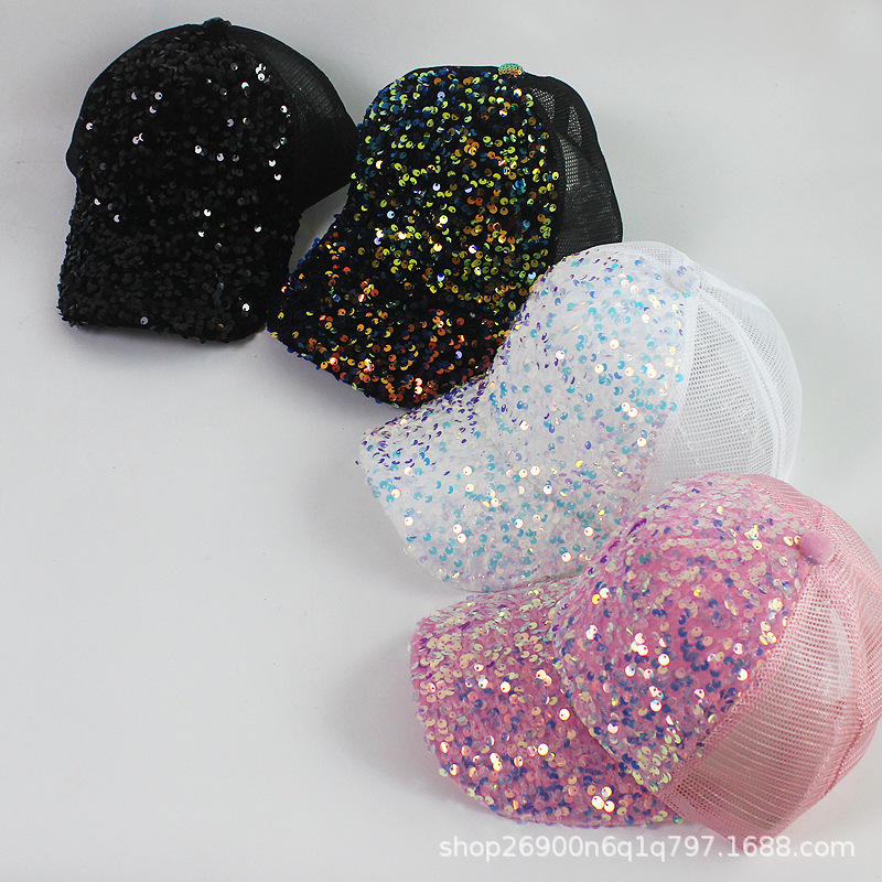 부드러운 소녀 스타일 여자 야구 모자 여름 새로운 모든 경기 그라디언트 밝은 색상 모자 그물 모자에 스팽글 모자 어린이스토어 가기