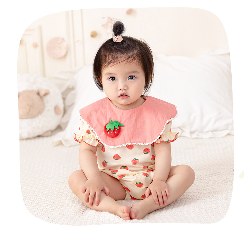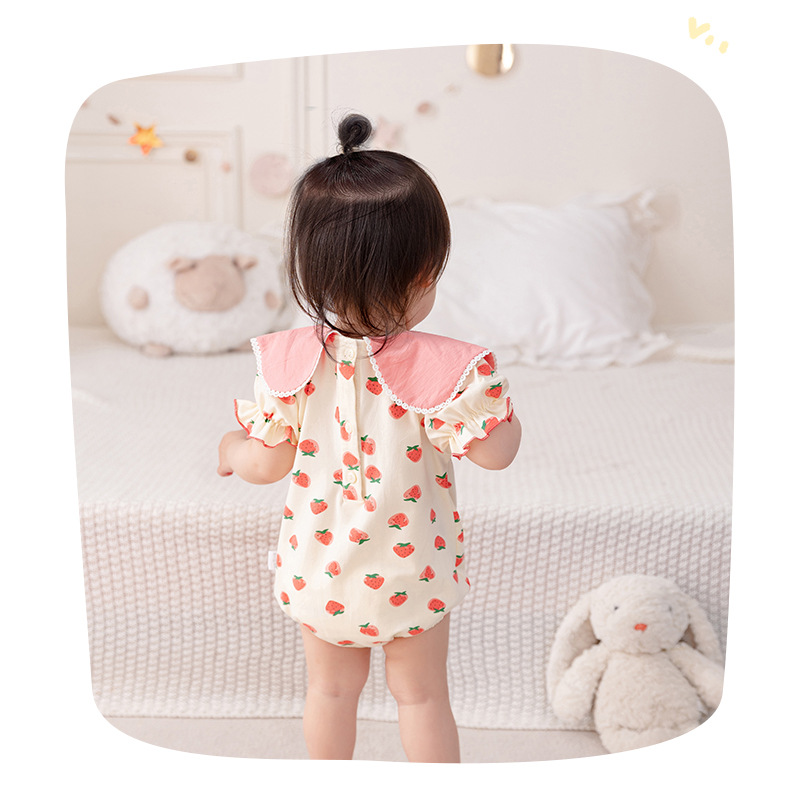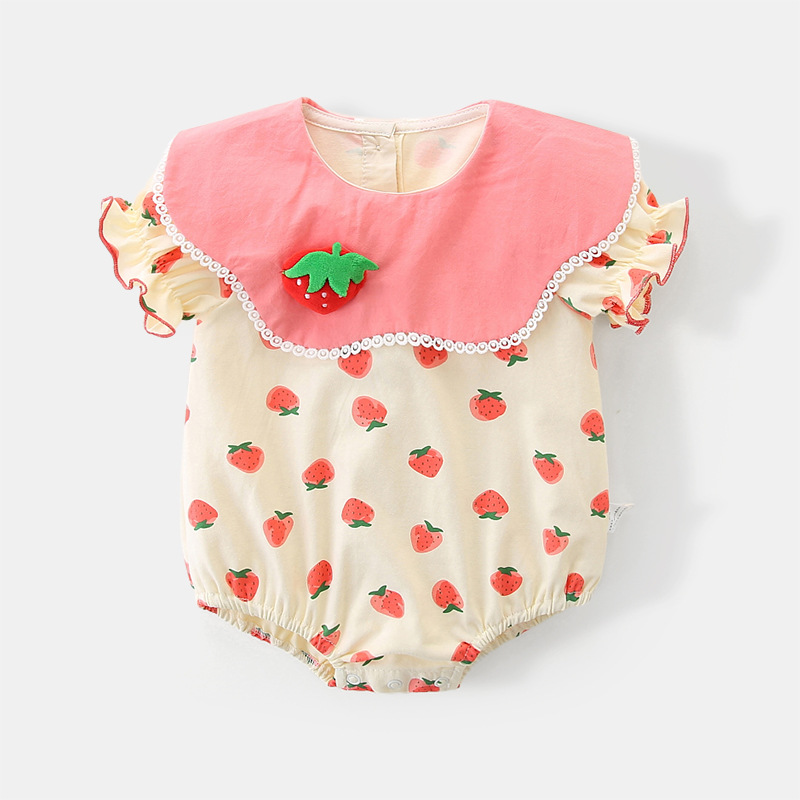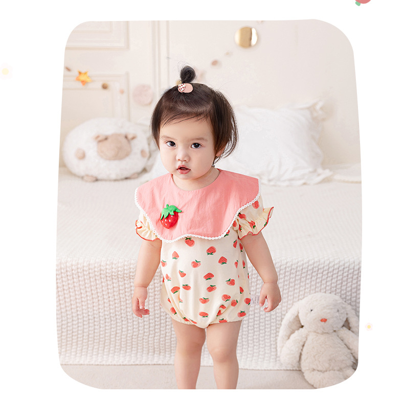아이디어 소녀 2023 여름 신생아 아기 점프 슈트 아기 백일 오래 된 인쇄 삼각형 가방 방귀 3181스토어 가기