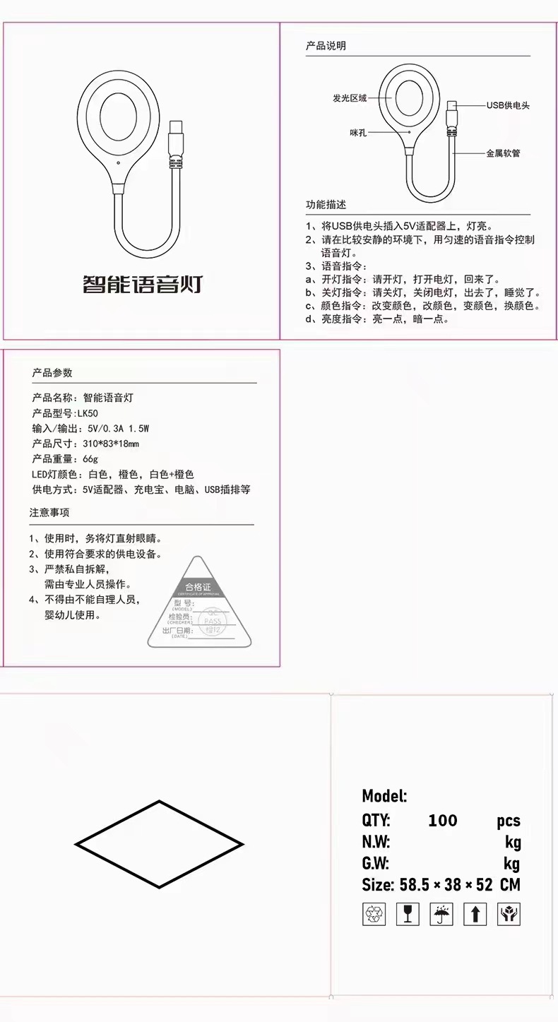 • 16 램프 비즈 지능형 음성 제어 USB 램프 (중국어)