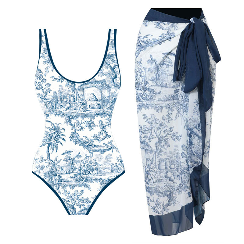 2025欧美新款连体印花泳衣女时尚泳装雪纺裙泳装套装热卖爆款现货