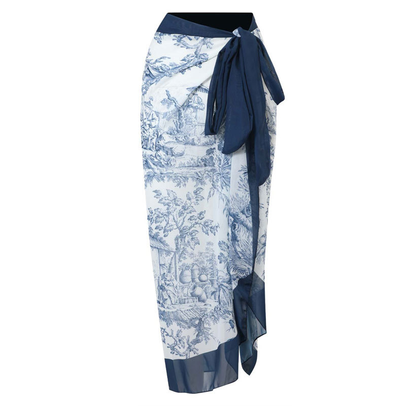 2024新款外贸聚拢比基尼性感高腰bikini分体泳衣套装批发雪纺长裙