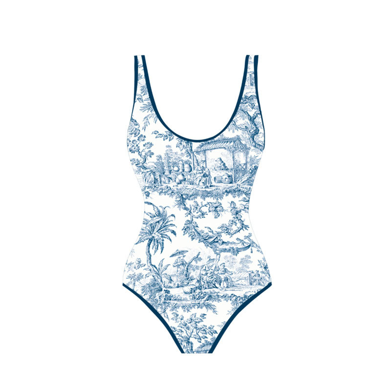 俏佳媛2025跨境新款印花欧美高弹牛仔连体女泳衣套装遮肚显瘦泳装