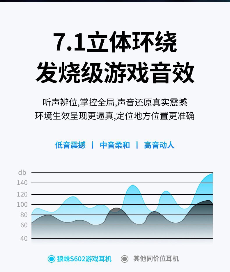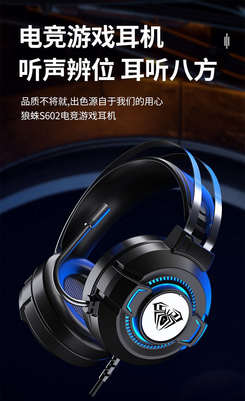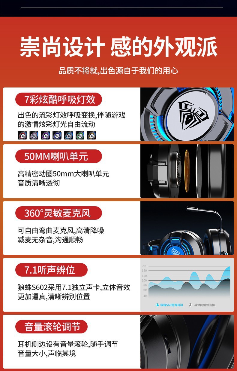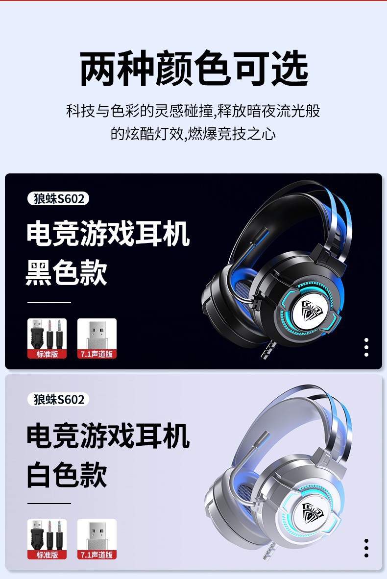 타란툴라 S602 비디오 게임 USB 헤드셋 7.1 채널 치킨 먹는 노트북 데스크탑 컴퓨터 유선 밴드스토어 가기