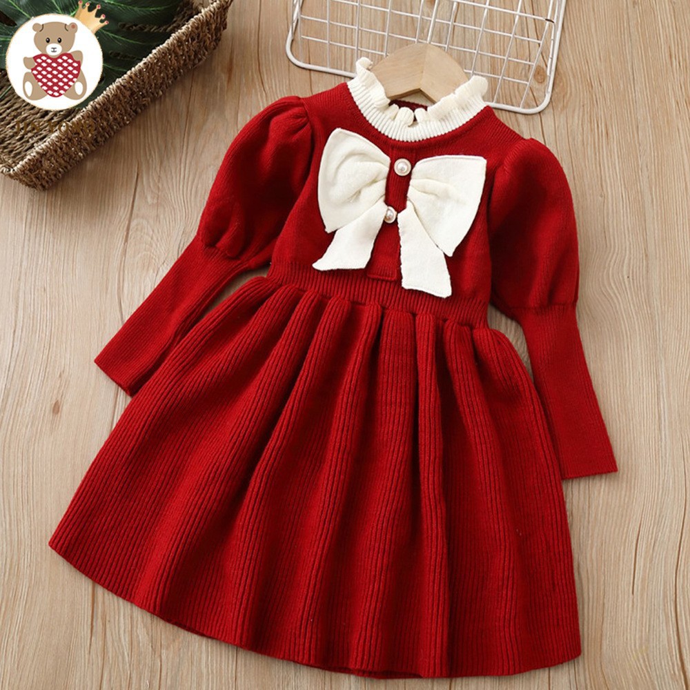 국경 간 대외 무역 소녀의 큰 활 스웨터 드레스 아동 의류 니트 드레스 새로운 패션 롱 스커트 아기 소녀 드레스스토어 가기