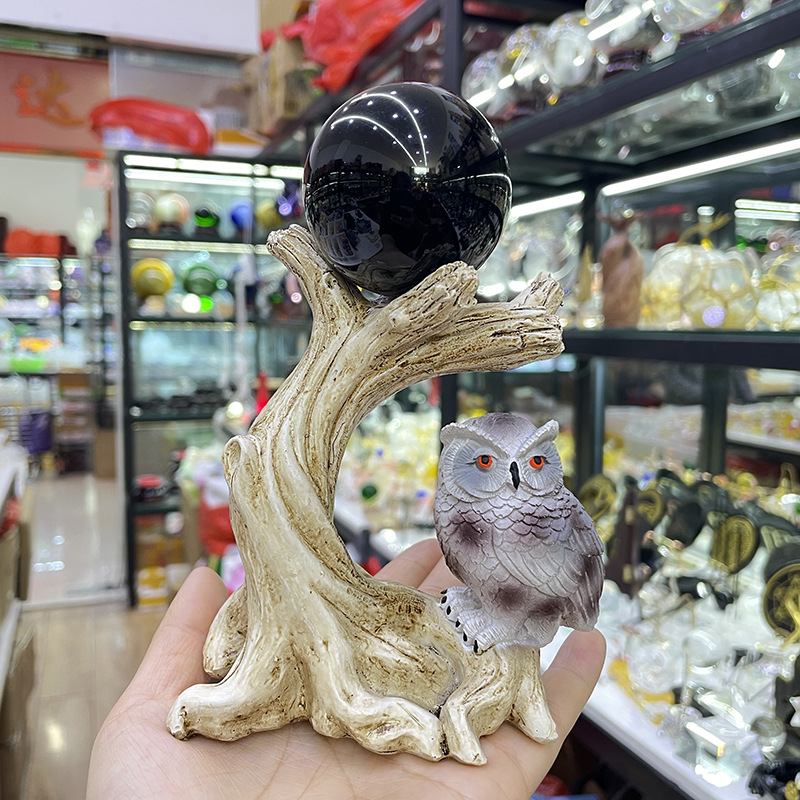 크리스탈 수지 볼 홀더 장식품 밤 올빼미 수지 공예 장식품 사무실 데스크탑 장식품 장식