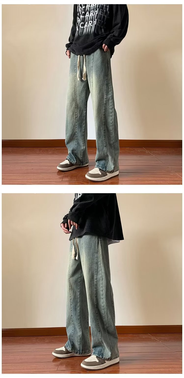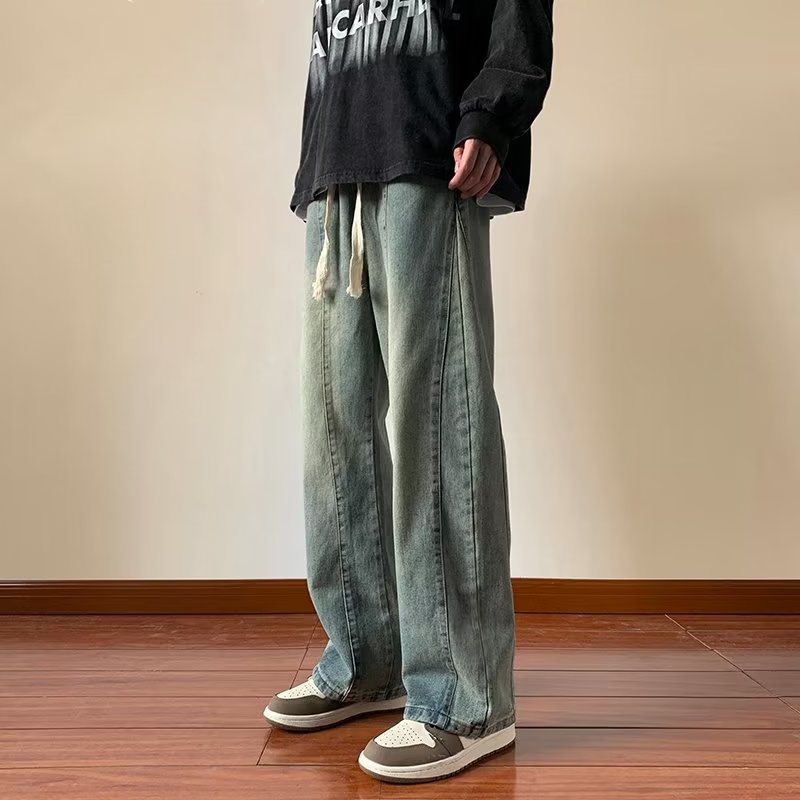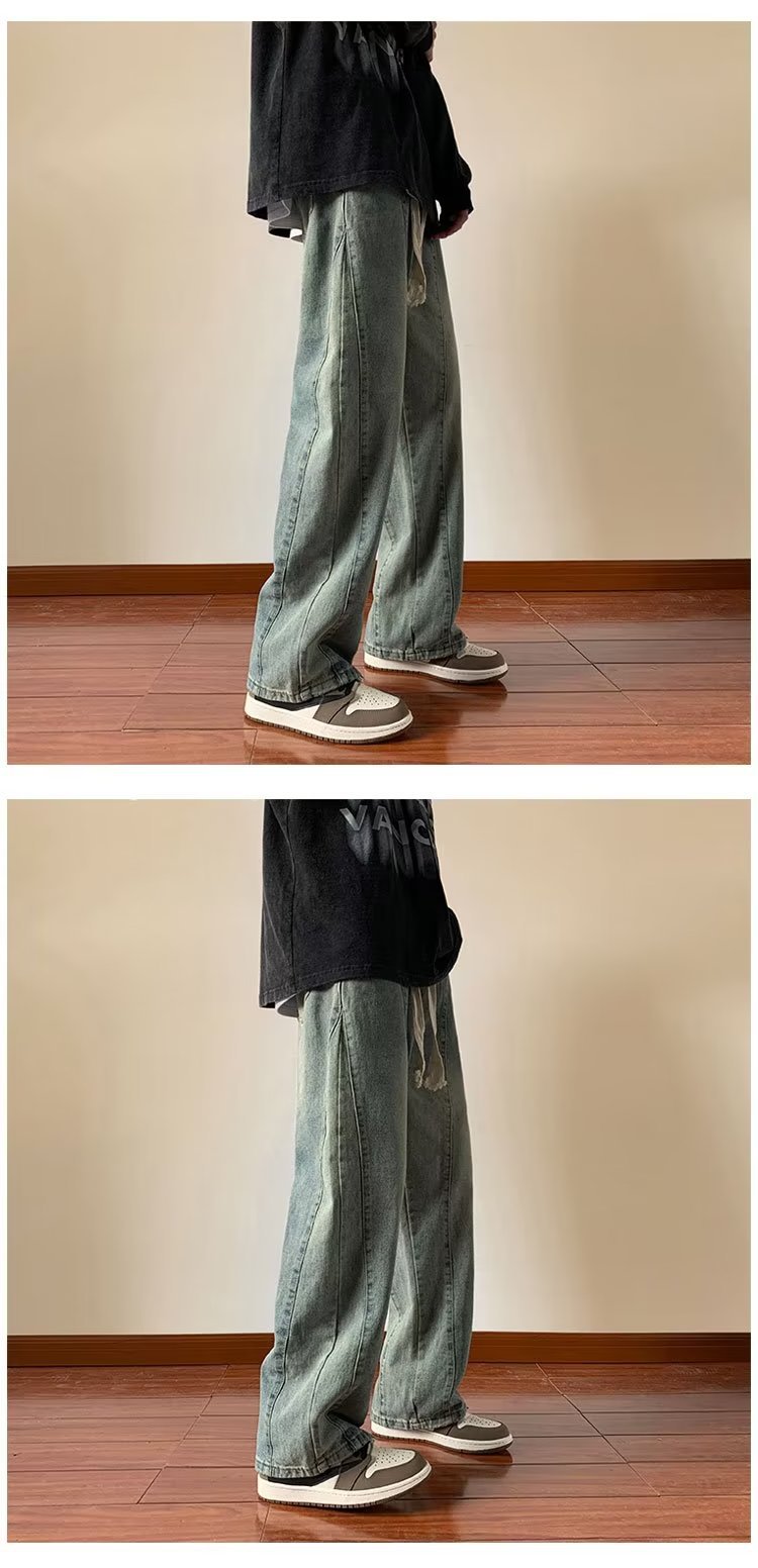아메리칸 스타일 트렌디 브랜드 청바지 남자의 2023 봄 새로운 복고풍 올드 캐주얼 스트레이트 레그 팬츠 하이 스트리트 느슨한 와이드 레그 팬츠스토어 가기