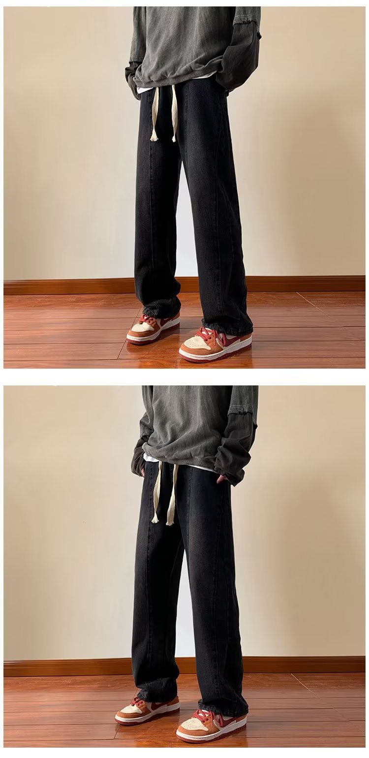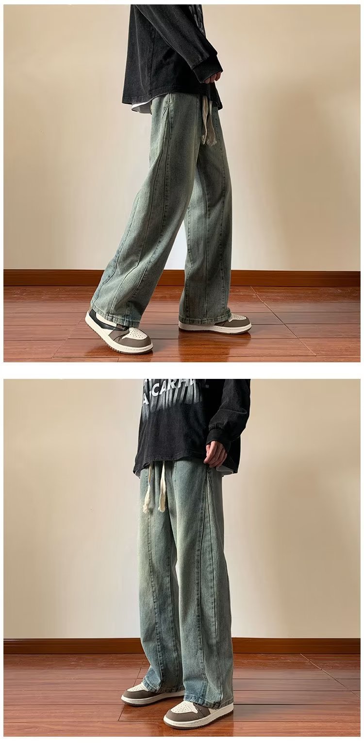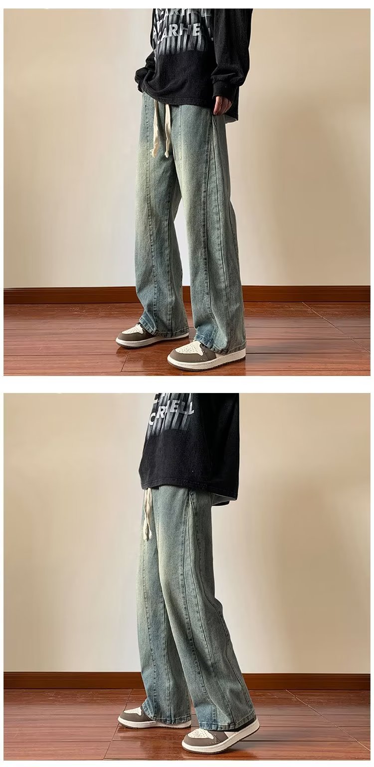 아메리칸 스타일 트렌디 브랜드 청바지 남자의 2023 봄 새로운 복고풍 올드 캐주얼 스트레이트 레그 팬츠 하이 스트리트 느슨한 와이드 레그 팬츠스토어 가기