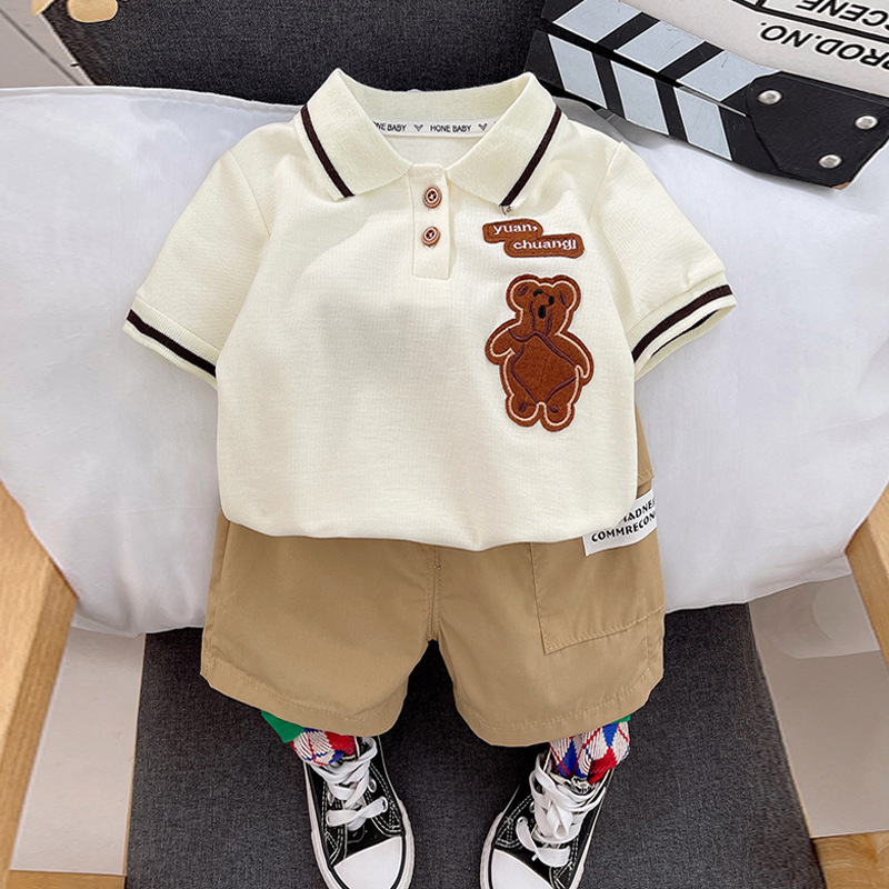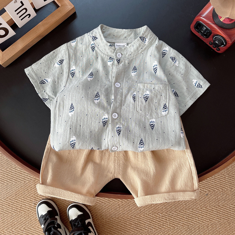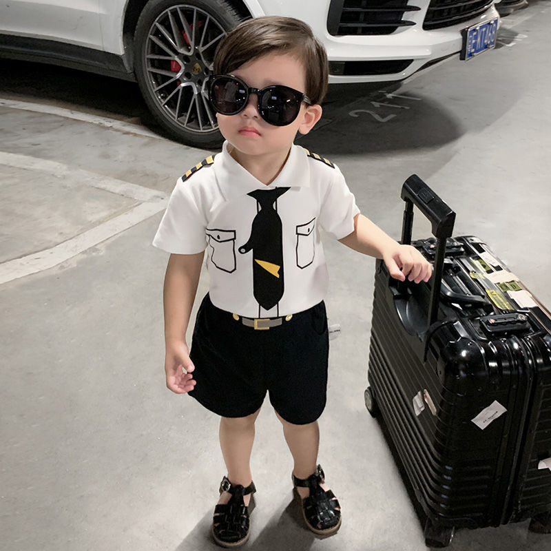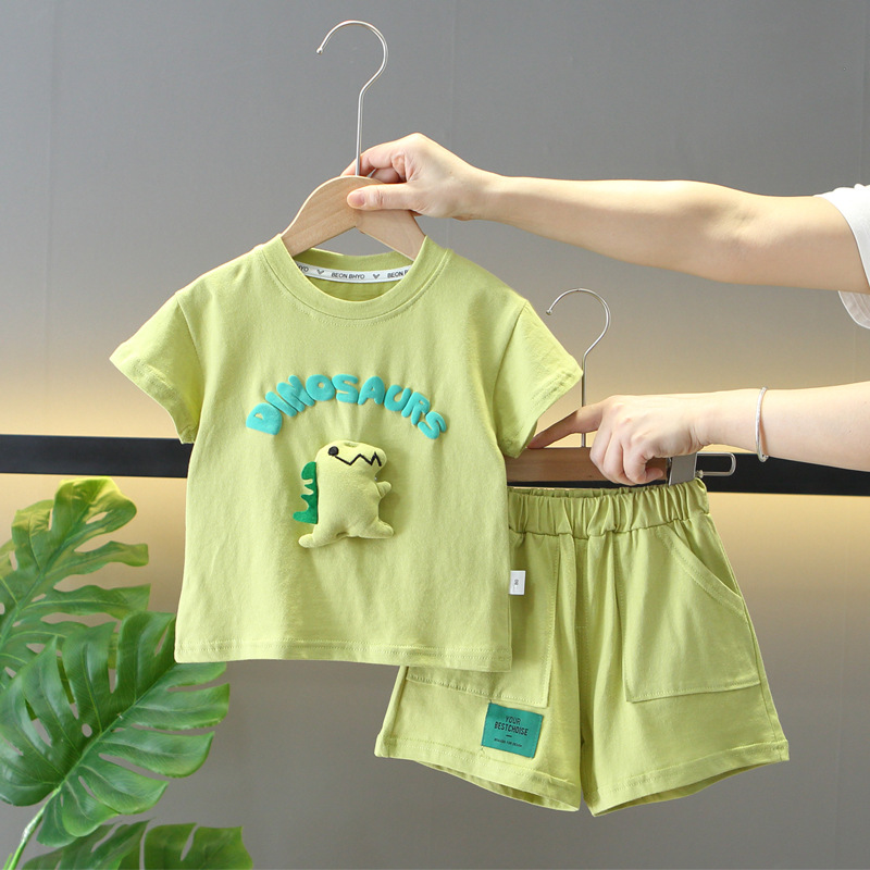 2025 새로운 만화 어린이 순수 반팔 양복 면화 소녀와 소년 여름 아기 옷 바지 아동 의류 투피스 세트스토어 가기