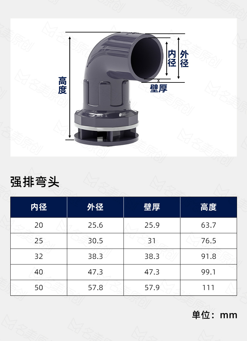 • 내경이 20mm 인 새로운 강한 팔꿈치