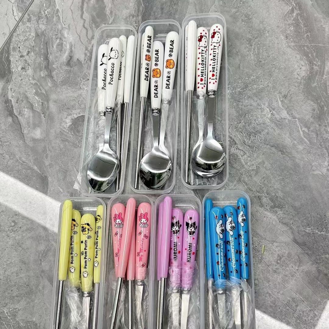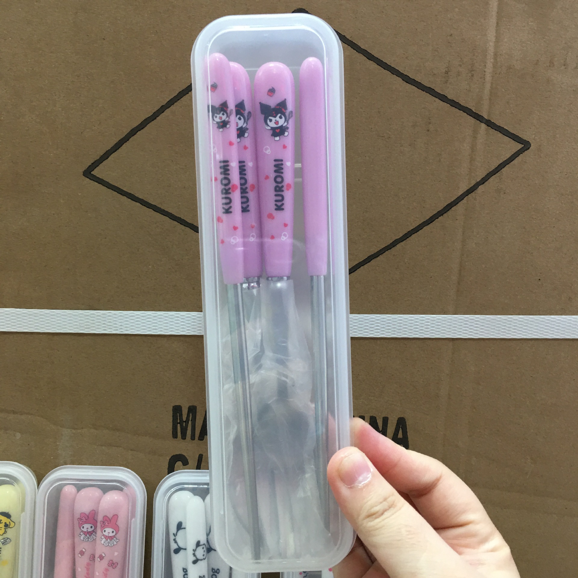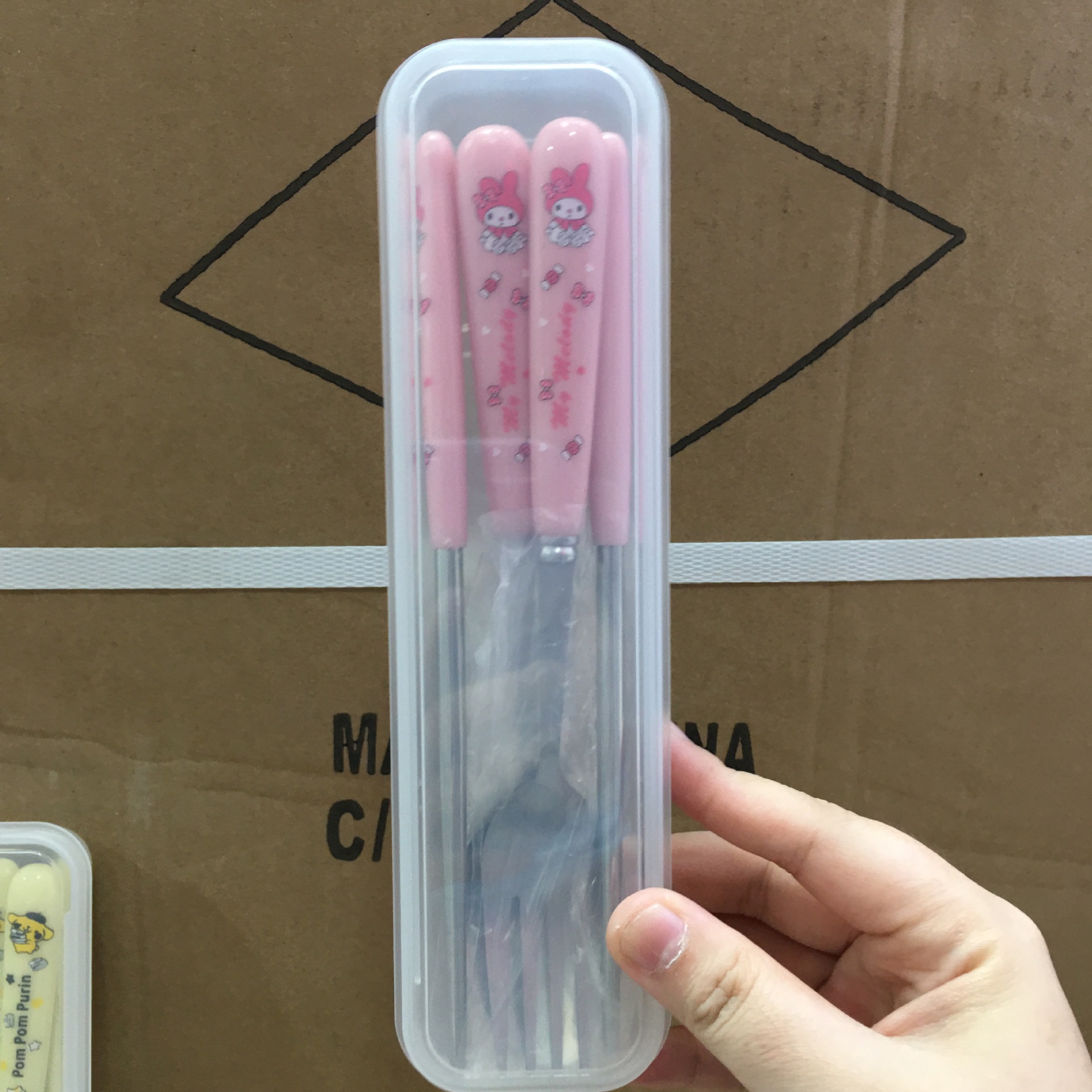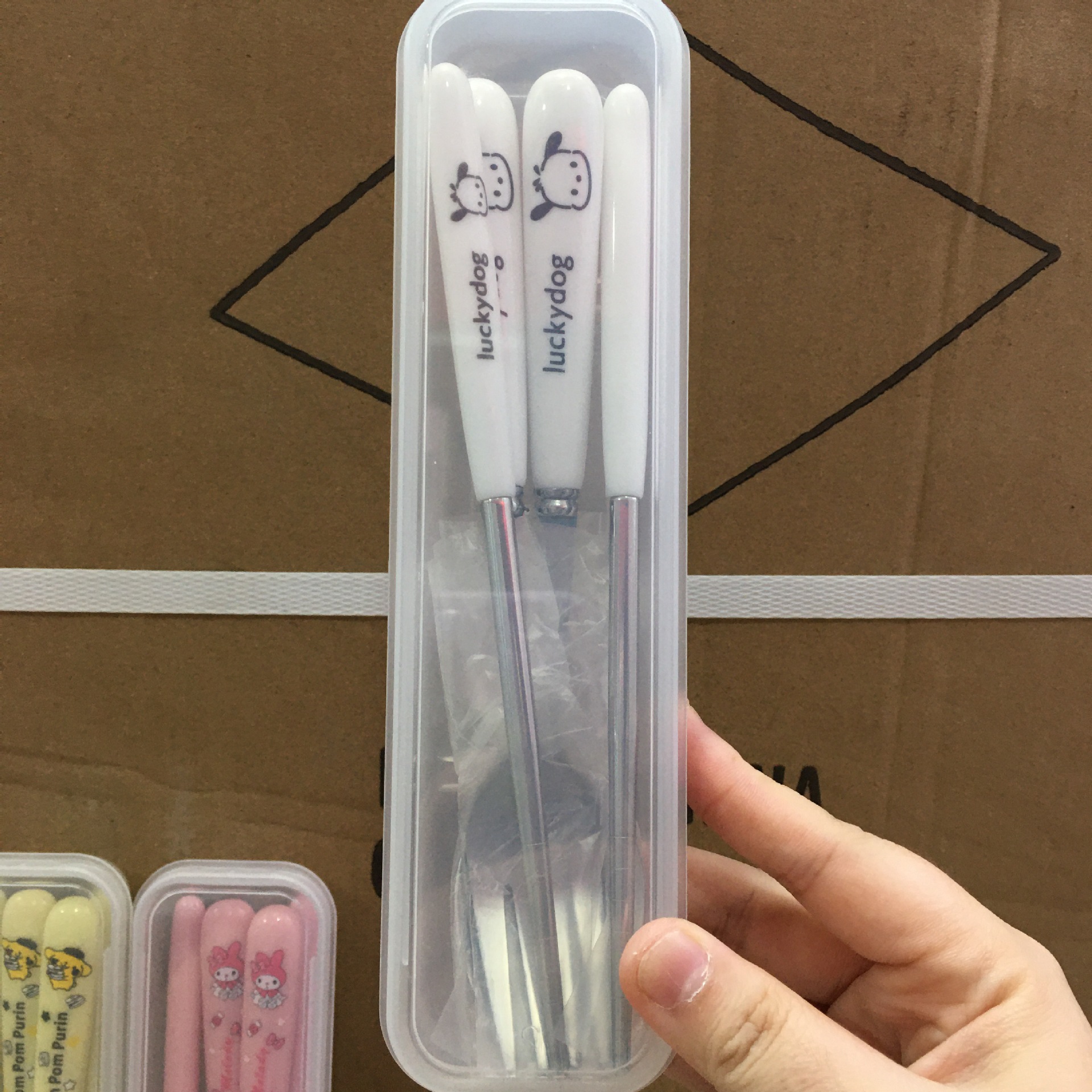 애니메이션 산리오 가족 젓가락 포크 스푼 세트 쿨미 파차 개 멜로디 휴대용 3 개 식기