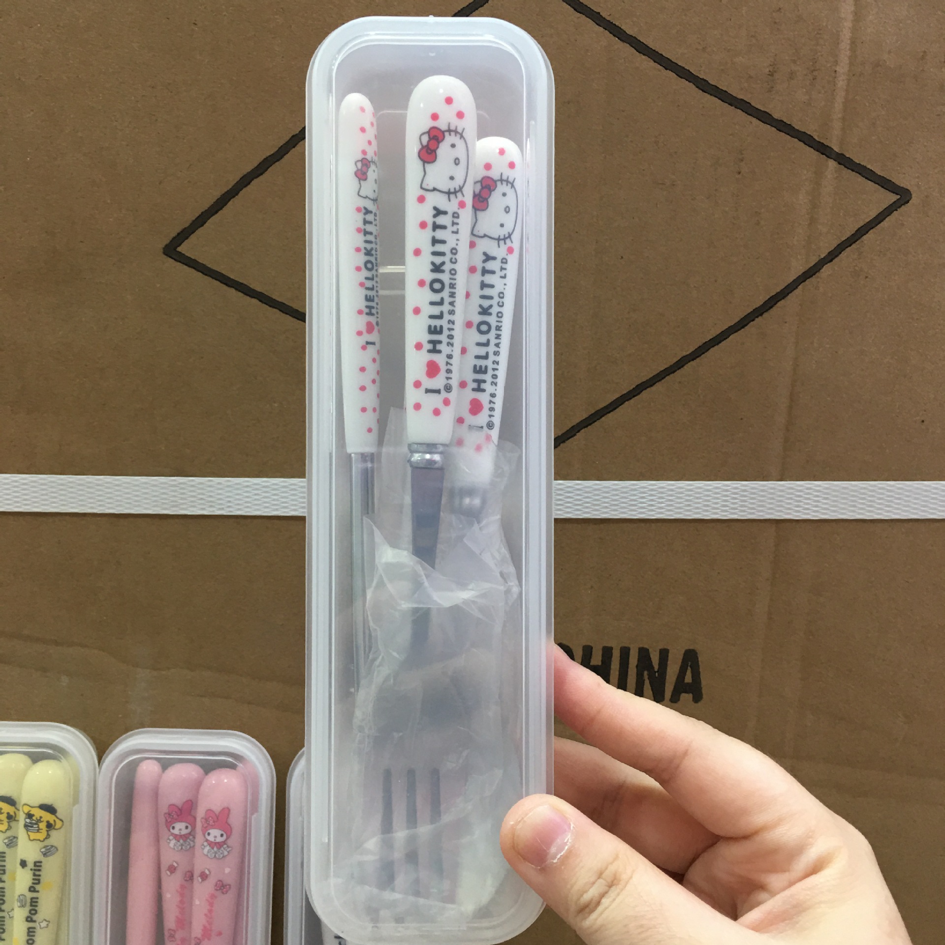• 산리오 혼합 나이프와 포크 젓가락 3 피스 식기 세트
