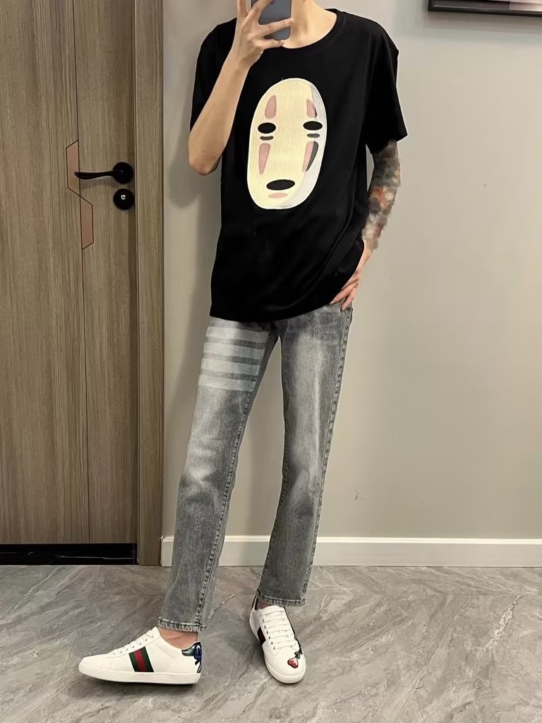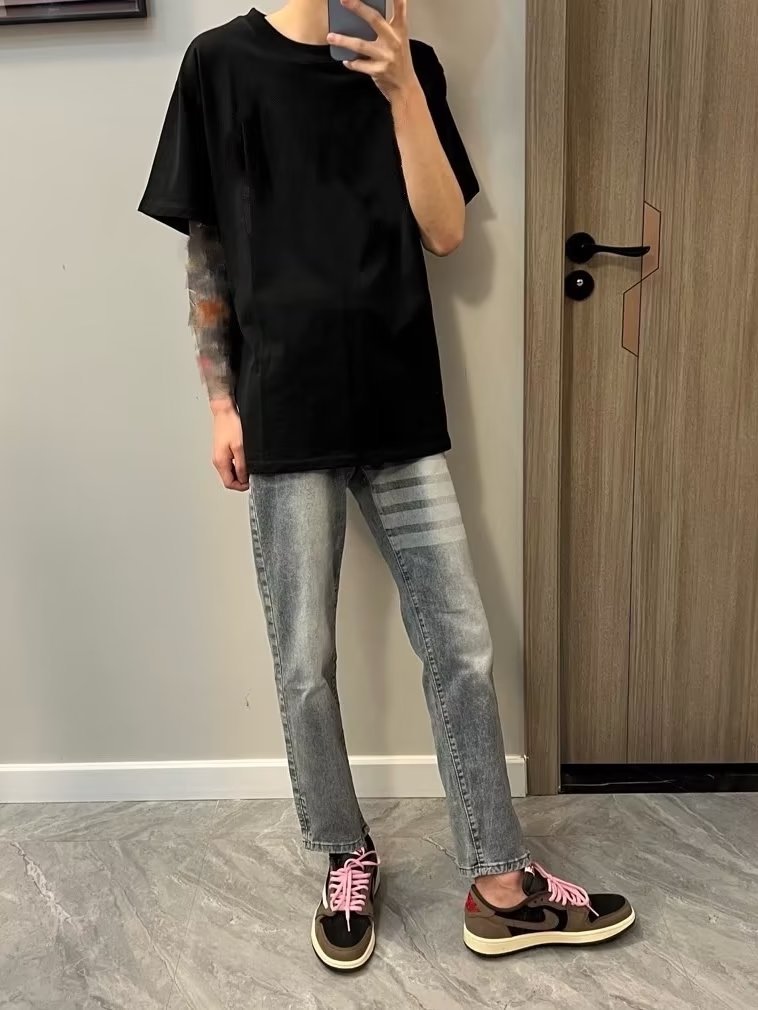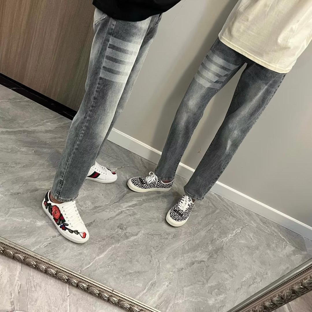 夏季新款四道杠牛仔裤男网红潮牌宽松直筒休闲学生小脚九分裤子秋