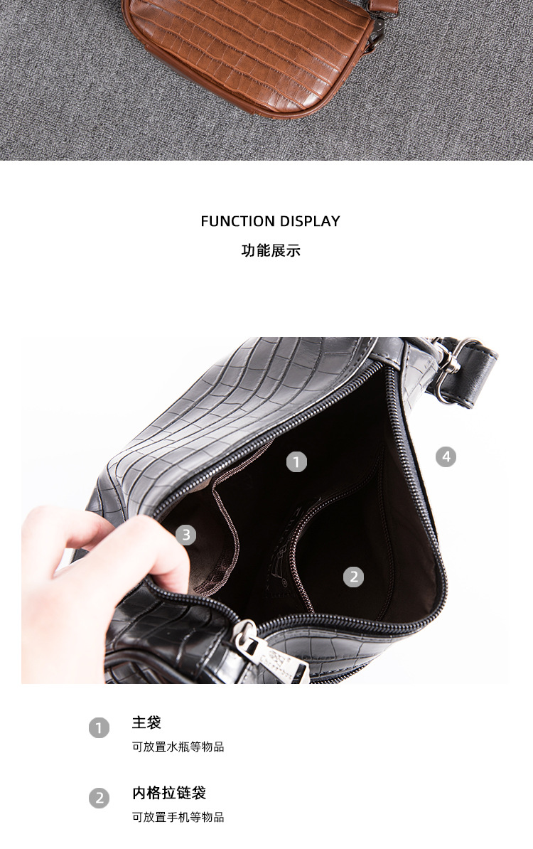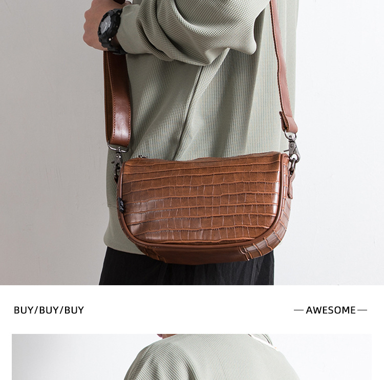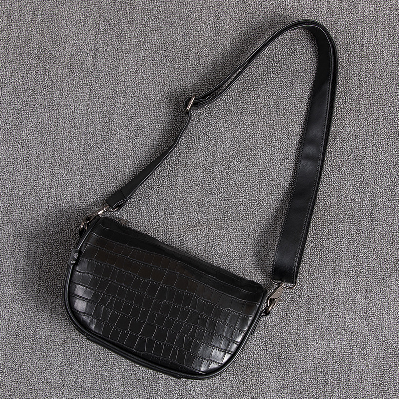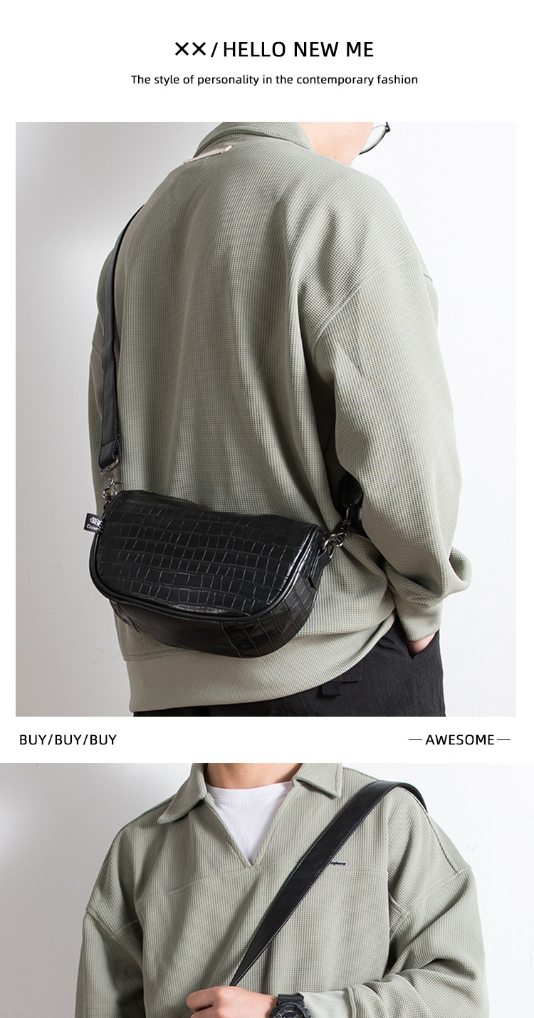 유럽과 미국 패션 숄더백 악어 패턴 초승달 가방 독특한 에나멜 가죽 크로스 바디 백 남성용 간단한 메신저 백 작은 사첼스토어 가기
