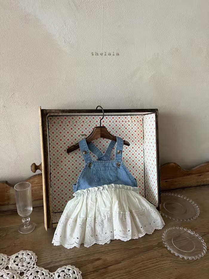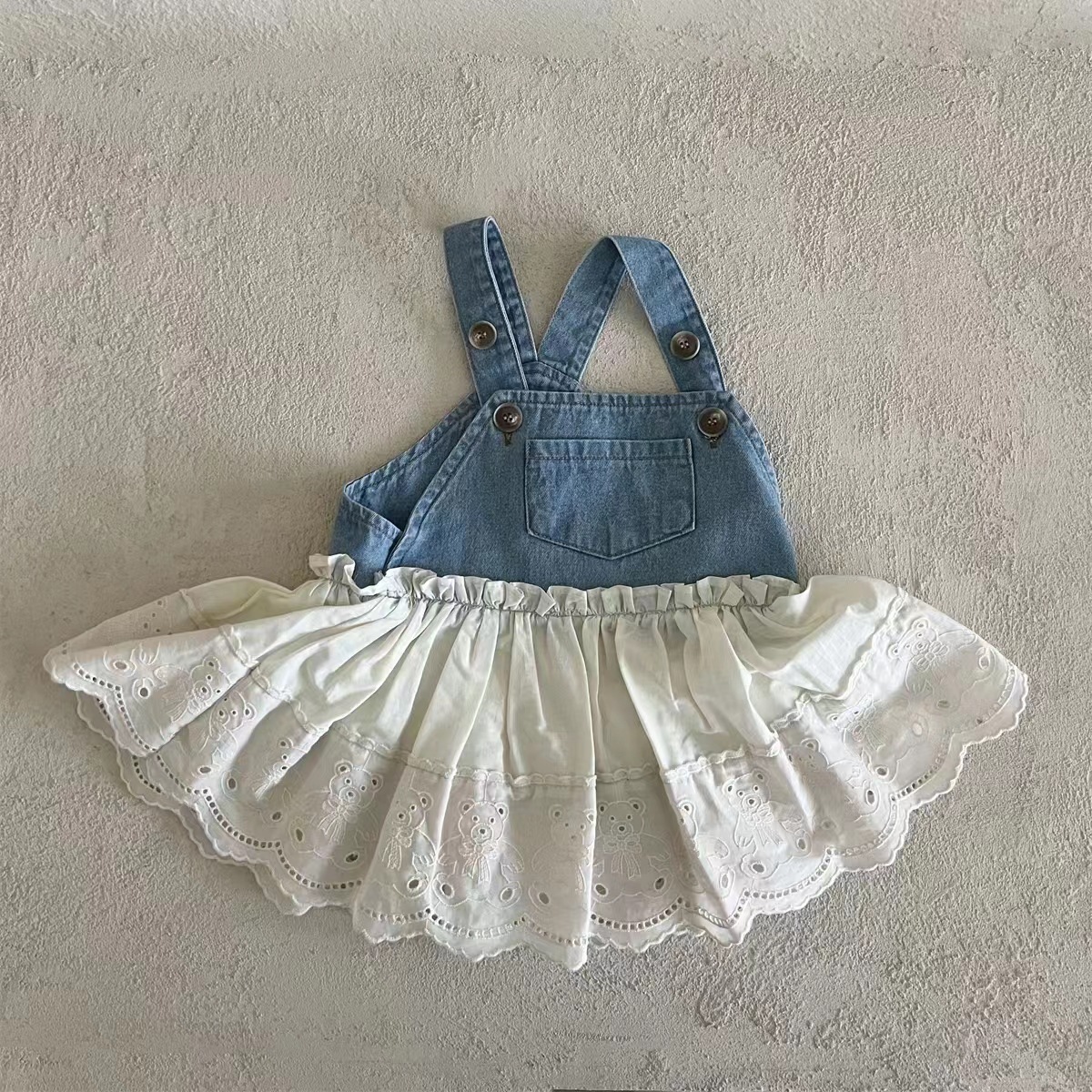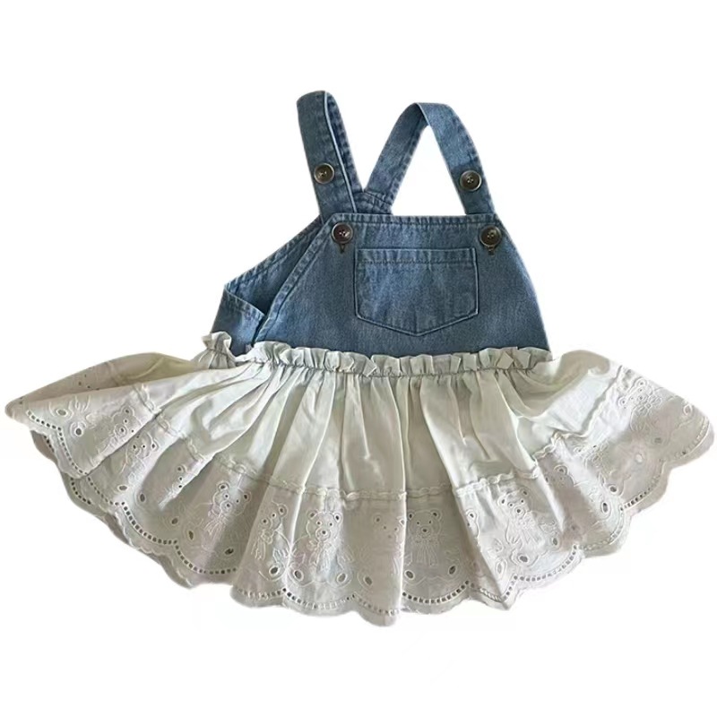 한국식 귀여운 아기 아동 의류 부드러운 데님 바느질 아기 소녀 봄 자수 곰 원피스