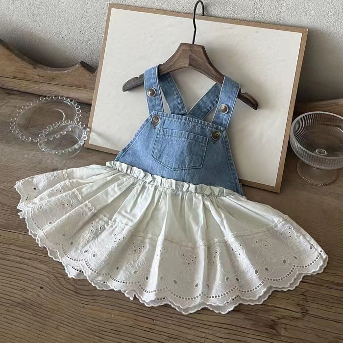 한국식 귀여운 아기 아동 의류 부드러운 데님 바느질 아기 소녀 봄 자수 곰 원피스스토어 가기