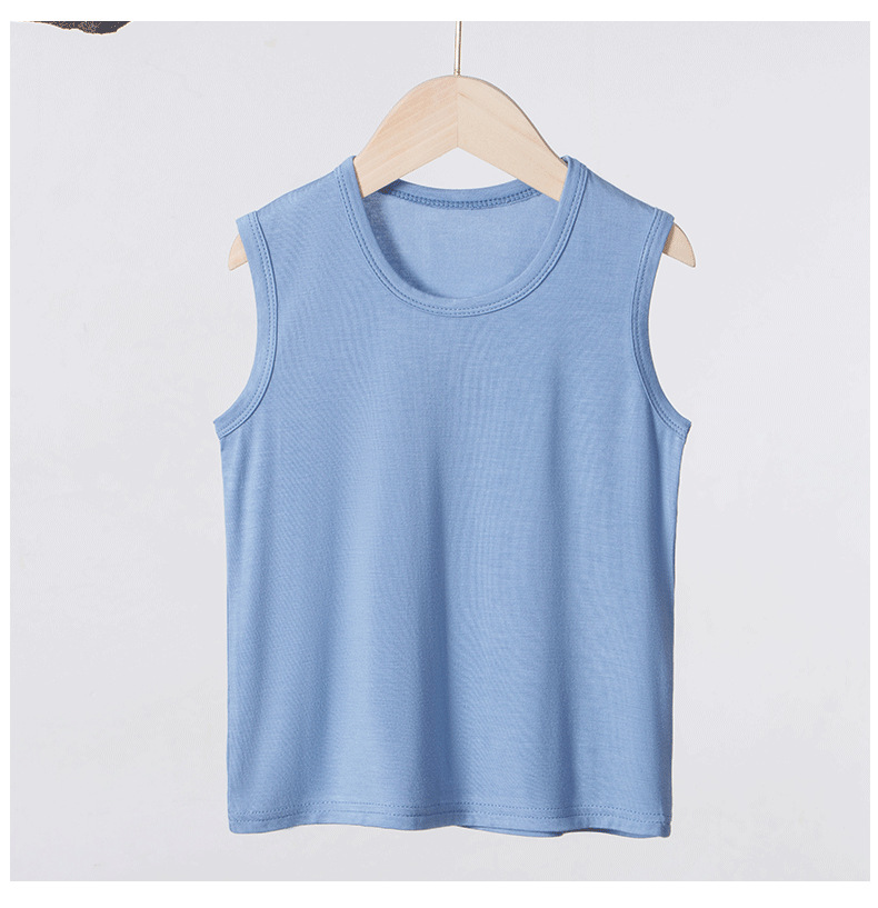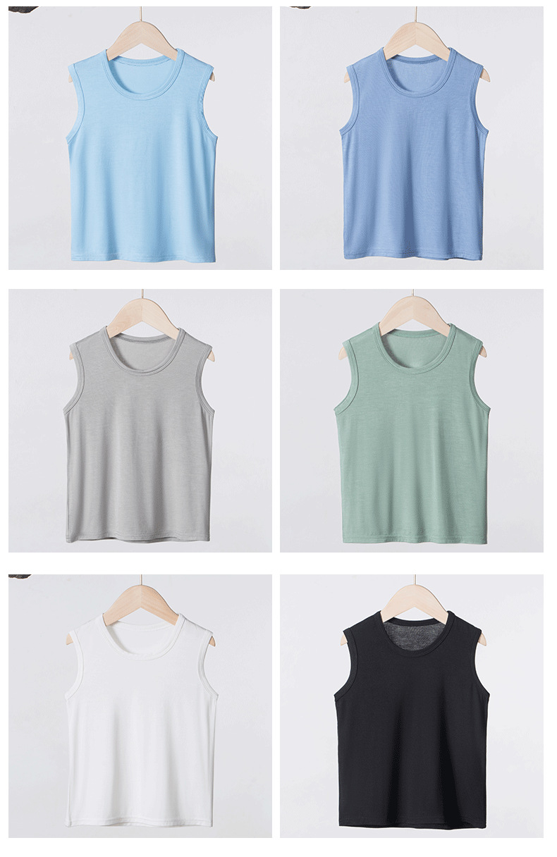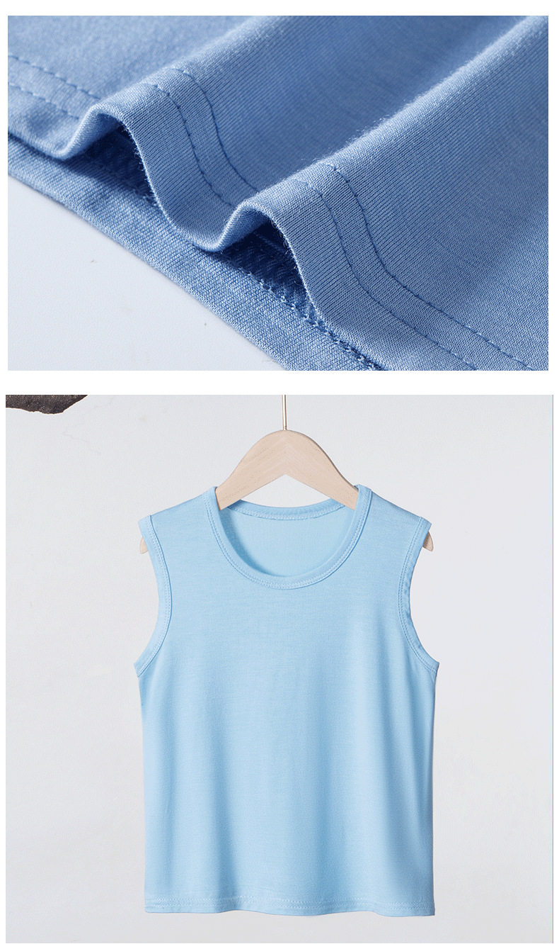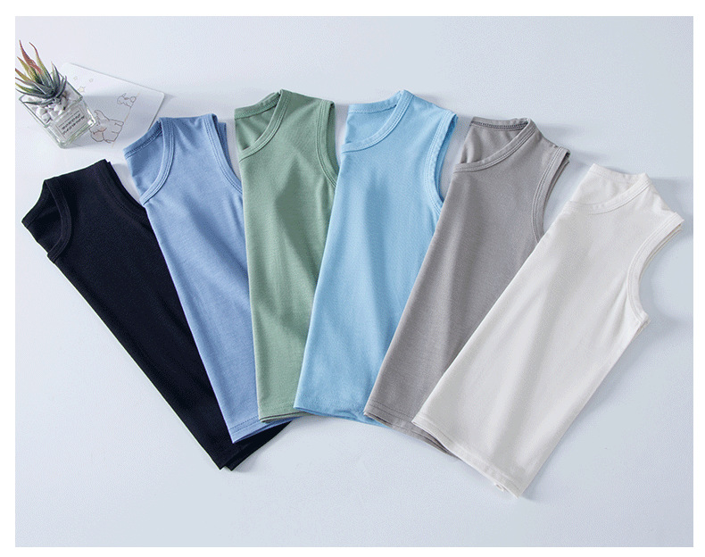 어린이 조끼 와이드 숄더 포기 여름 얇은 여성 남성 아기 부모-자식 단색 탄성 아이스 센스 드레이핑 민소매 티셔츠스토어 가기