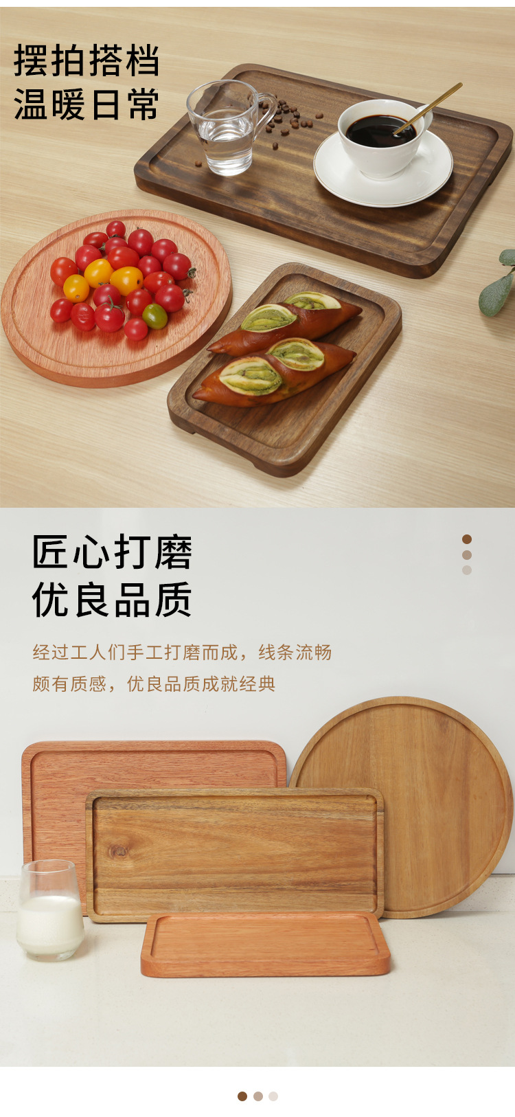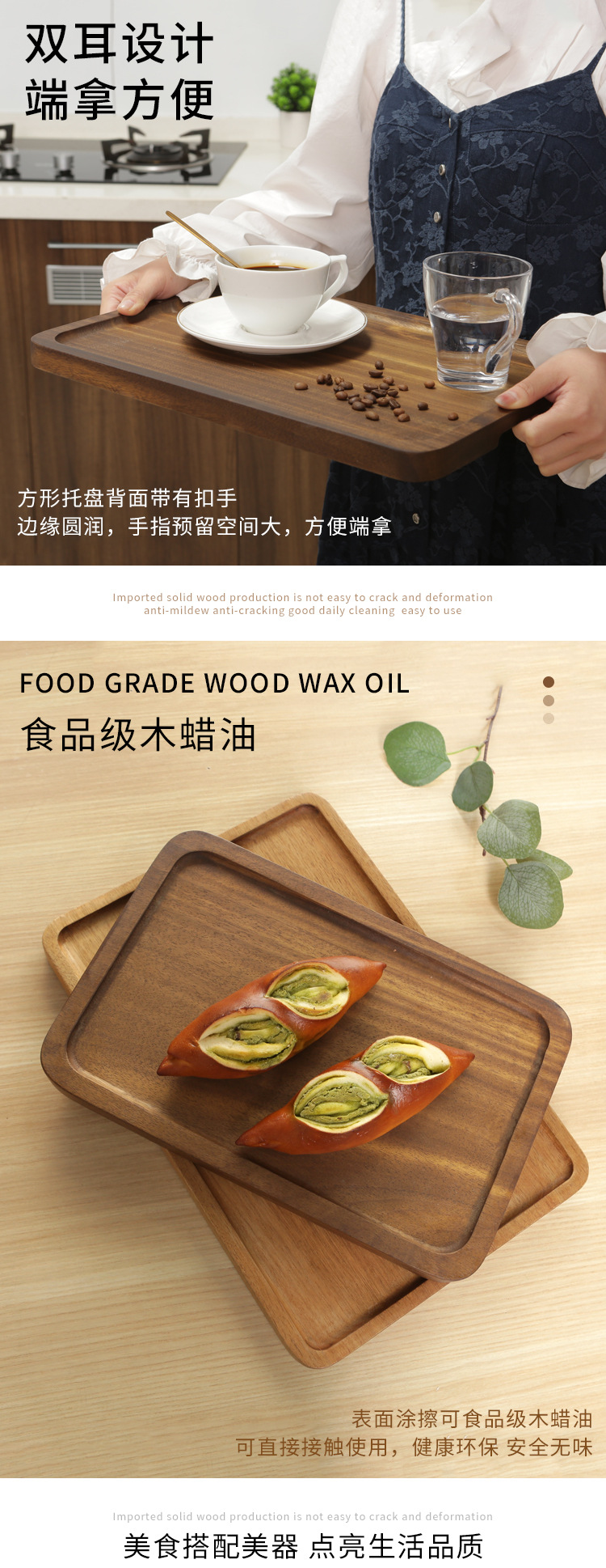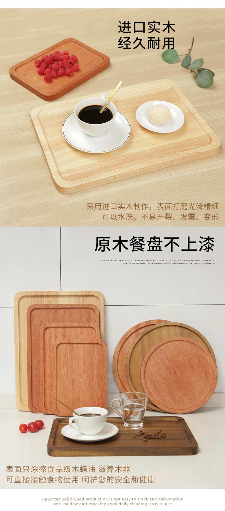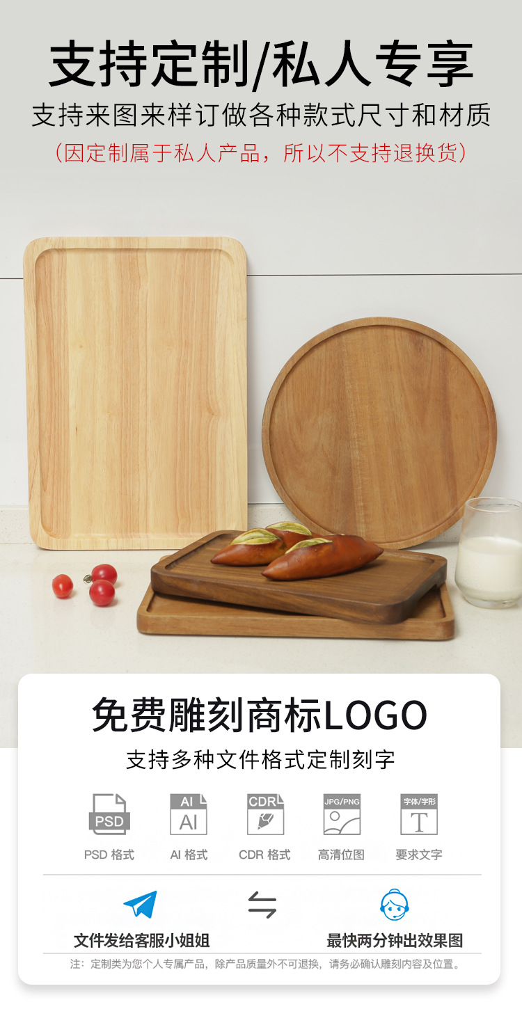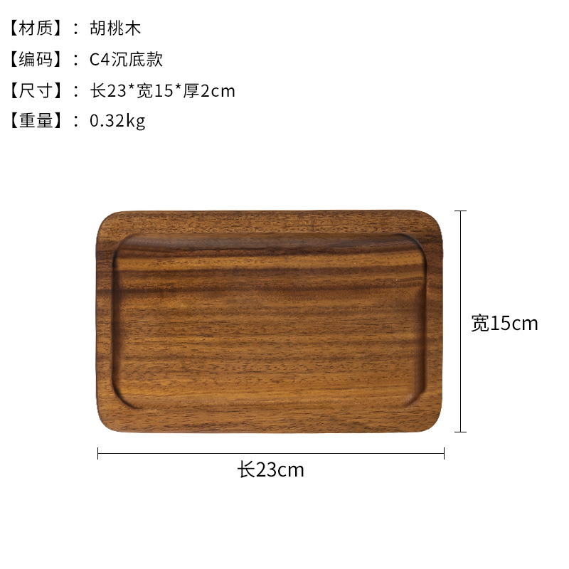 일본식 가정용 호두 단단한 나무 직사각형 트레이 나무 컵 홀더 물 컵 찻잔 접시 보관 접시 디너 플레이트 홀더