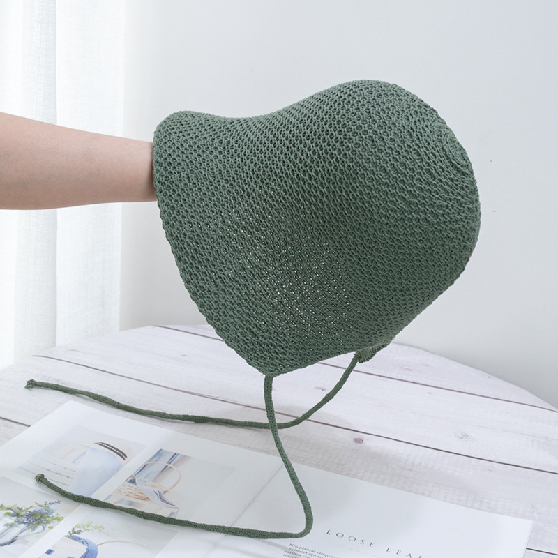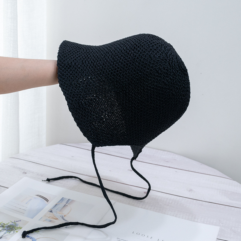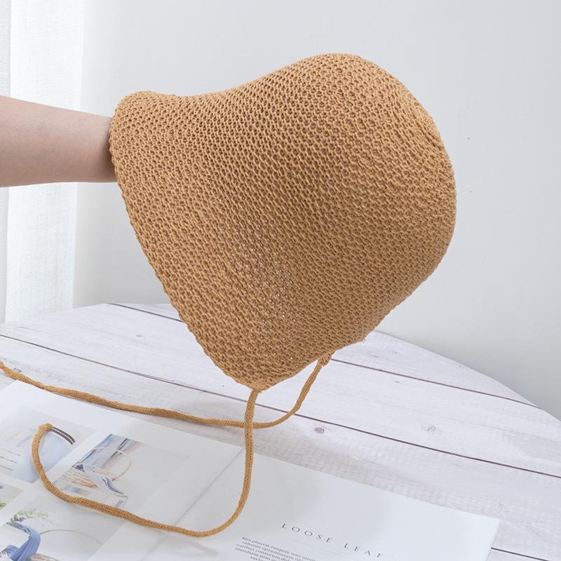어부 모자 여성용 시아 케 포니 테일 니트 묶은면과 린넨 통기성 얼굴 작은 단색 자외선 차단제 로리 분지 모자