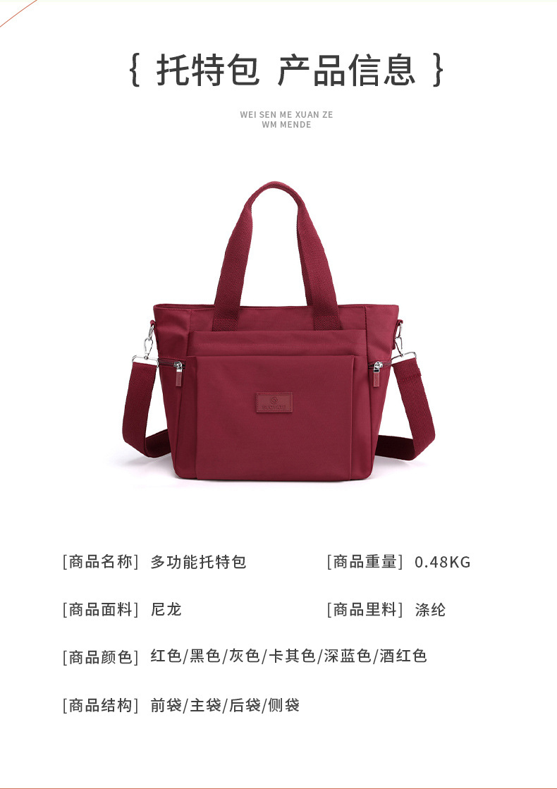 대용량 여성용 핸드백 새로운 심플 통근 토트백 엄마를 위한 발수성 멀티 컴 숄더 크로스바디 백
