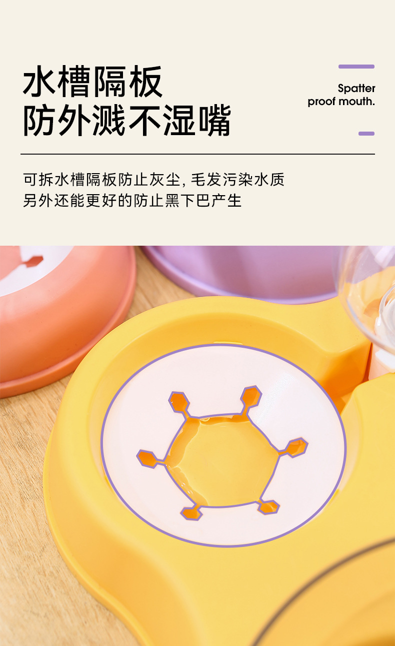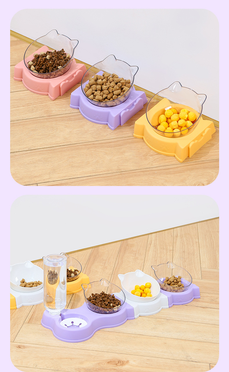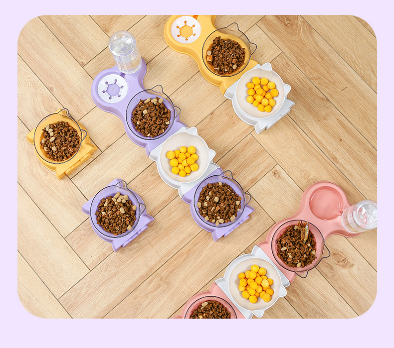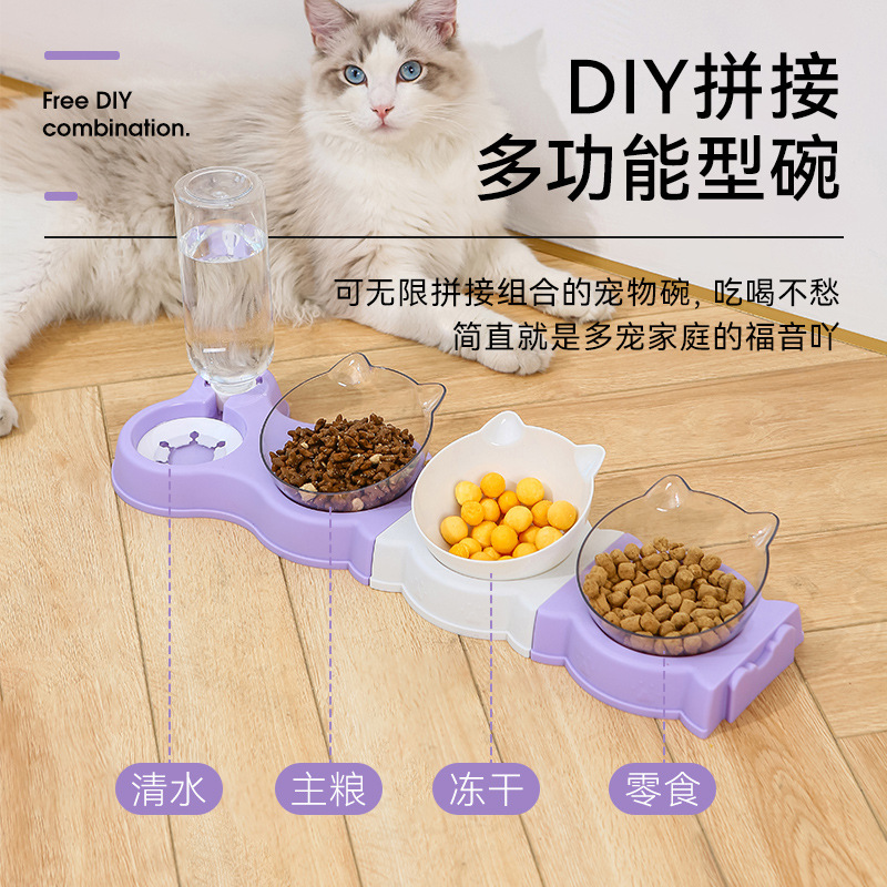 고양이 그릇은 마시는 병 더블 그릇 자궁 경부 척추 보호 방지 노크 다기능 애완 동물 그릇 젖은 입 개 더블 보울과 함께 접합 할 수 있습니다.