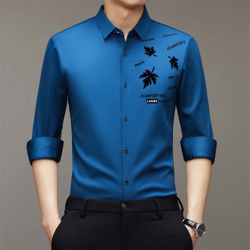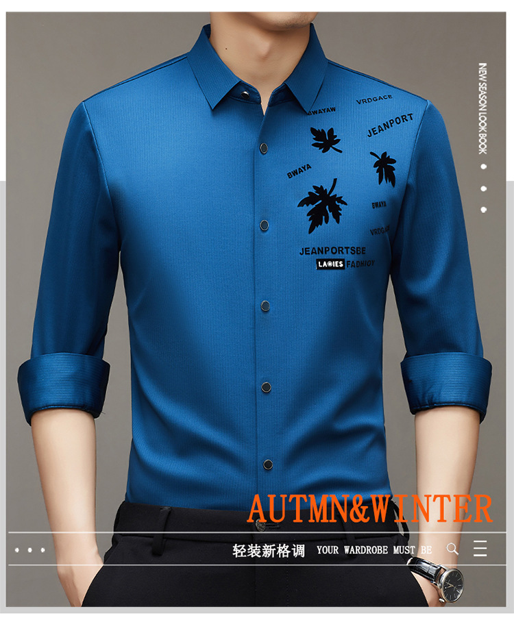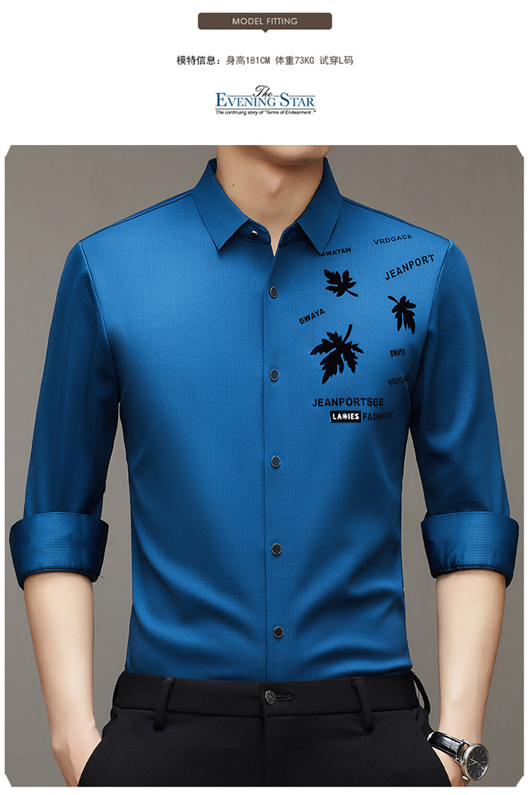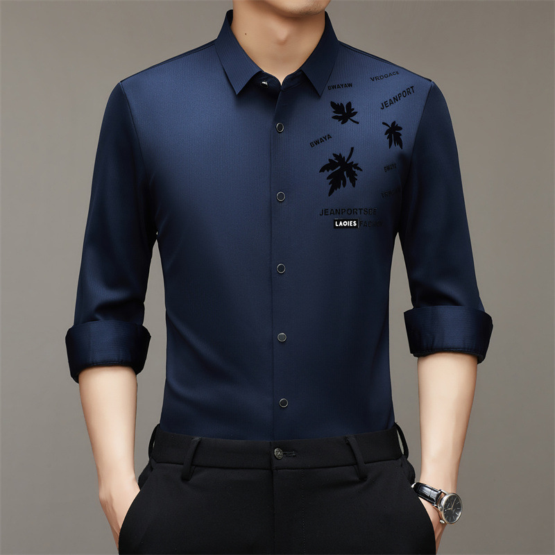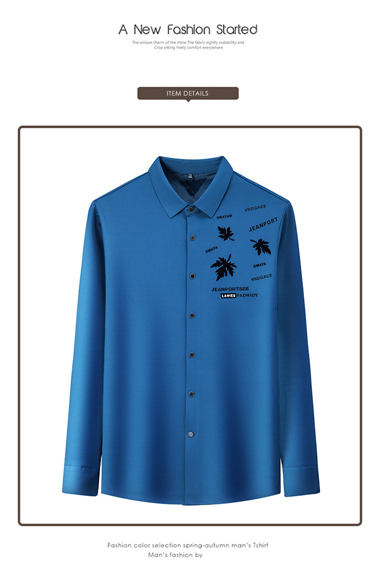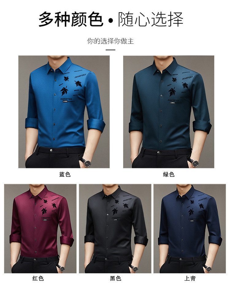 메이플 리프 심리스 긴팔 셔츠 남성 탑 봄 가을 신상품 만능 비즈니스 캐주얼 아이스 실크 셔츠스토어 가기