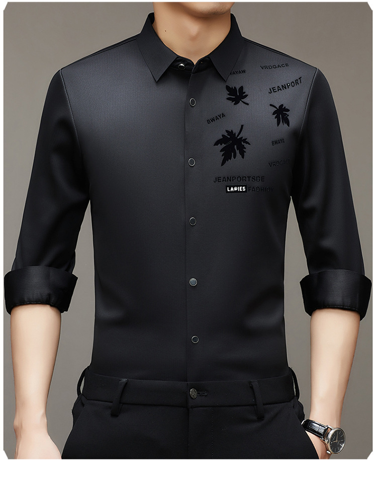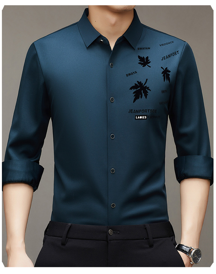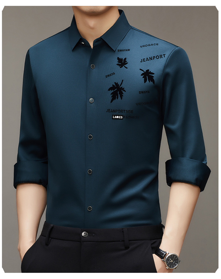 메이플 리프 심리스 긴팔 셔츠 남성 탑 봄 가을 신상품 만능 비즈니스 캐주얼 아이스 실크 셔츠