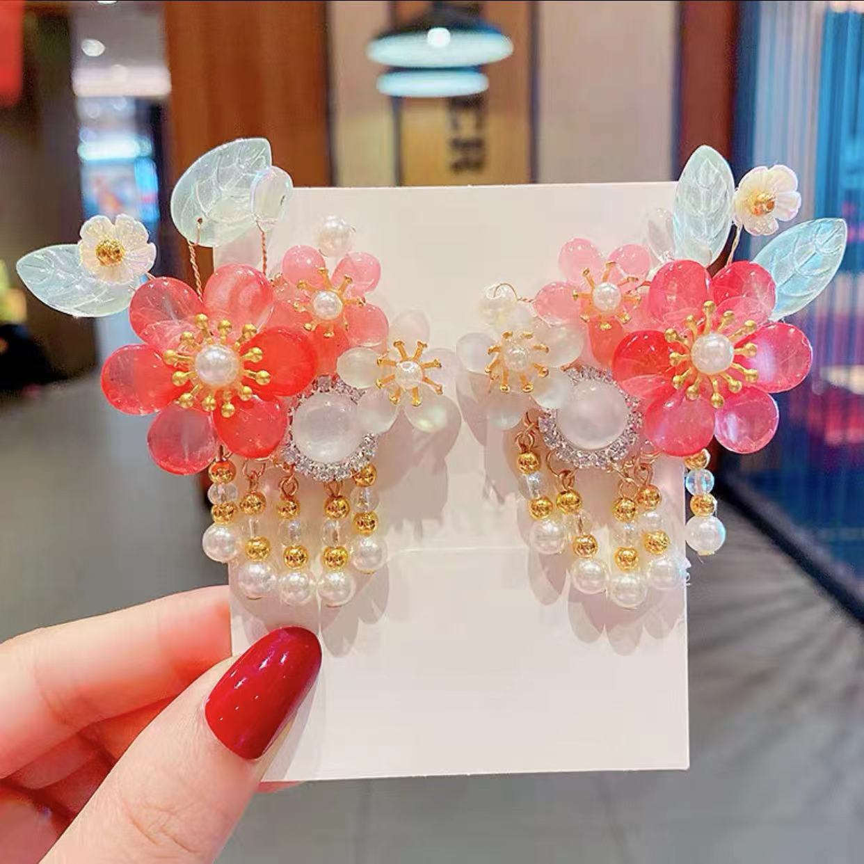 골동품 머리핀 고대 의상 헤어 액세서리 중국 스타일 진주 꽃 산책 한푸 액세서리 술 머리핀 어린 소녀 공주 모자스토어 가기
