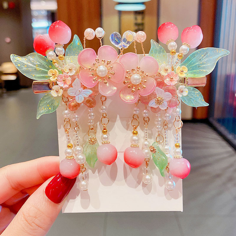 골동품 머리핀 고대 의상 헤어 액세서리 중국 스타일 진주 꽃 산책 한푸 액세서리 술 머리핀 어린 소녀 공주 모자