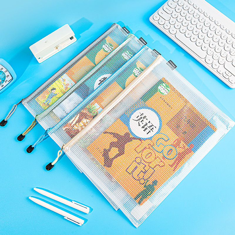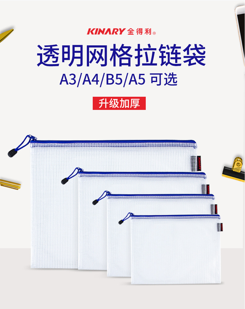 진 델리 그리드 지퍼 가방 A4 문서 가방 투명 A5 정보 가방 그리드 a3 파일 가방 pvc 보관 가방스토어 가기