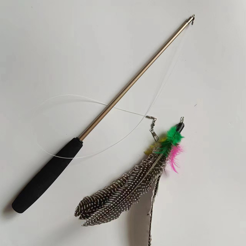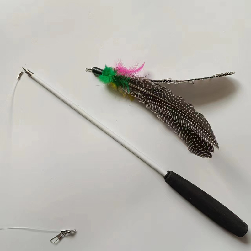 애완 동물 용품 고양이 장난감 새로운 3 섹션 텔레스코픽 고양이 장난감 스틱 고양이 장난감 세트 재고 둥지 깃털 교체 헤드스토어 가기