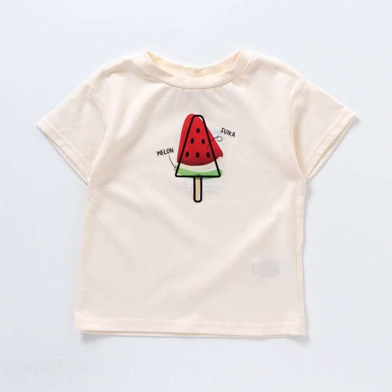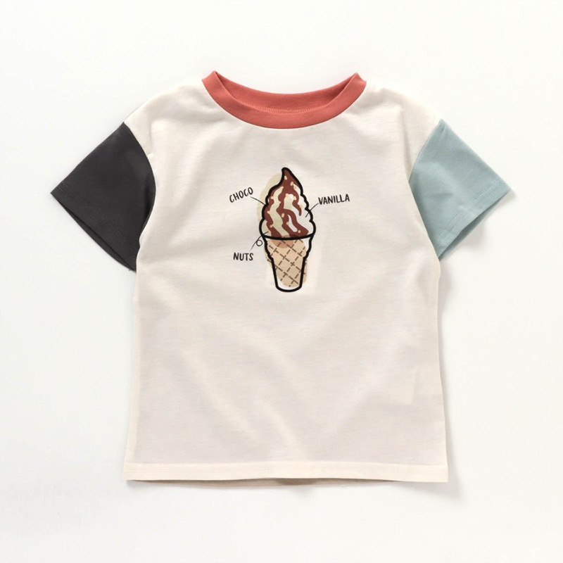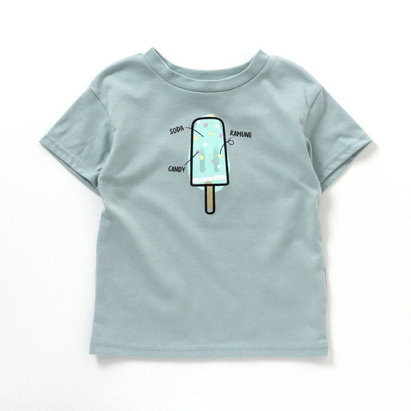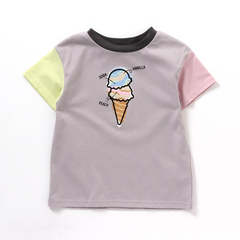 여름 아동복 만화 인쇄 짧은 T 아이스크림 만화 여성용 미드 빅 어린이 크루넥 반팔 어린이 티셔츠 멀티 컬러 옵션