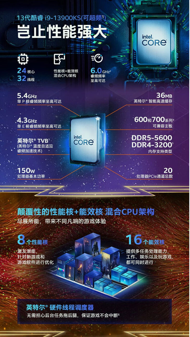 PC 인텔 13 세대 코어 i9-13900KS 프로세서 CPU 박스/이산
