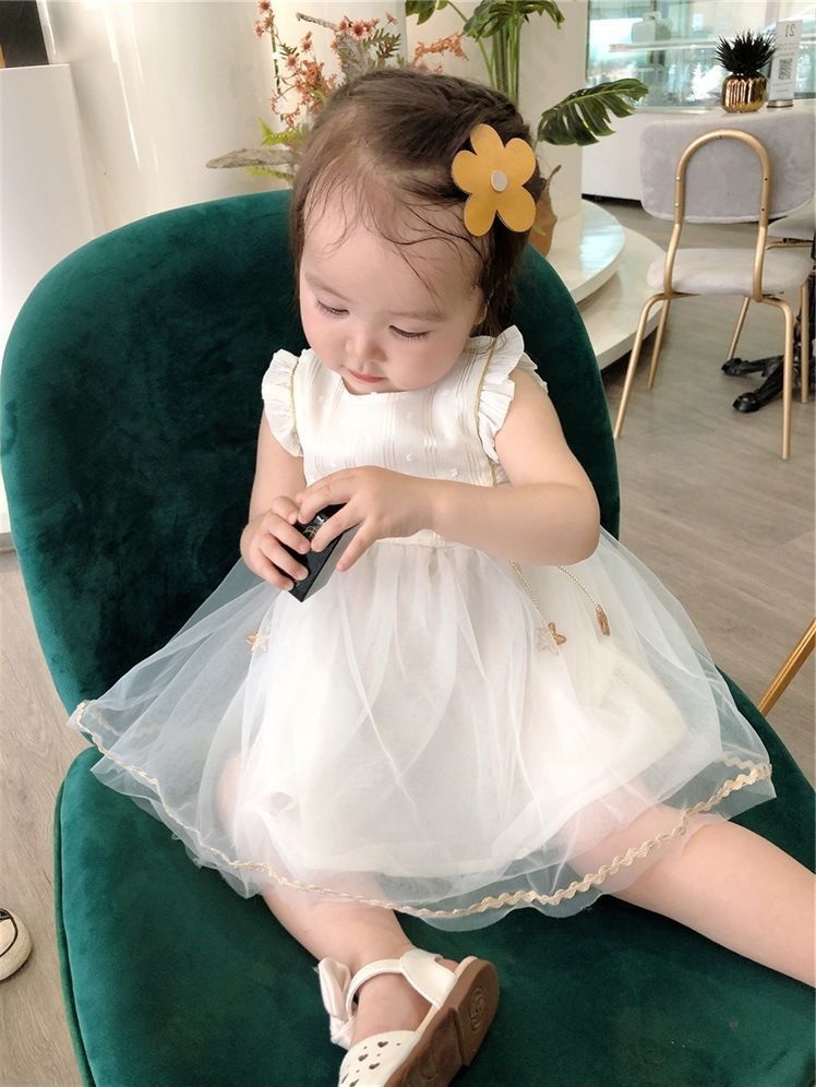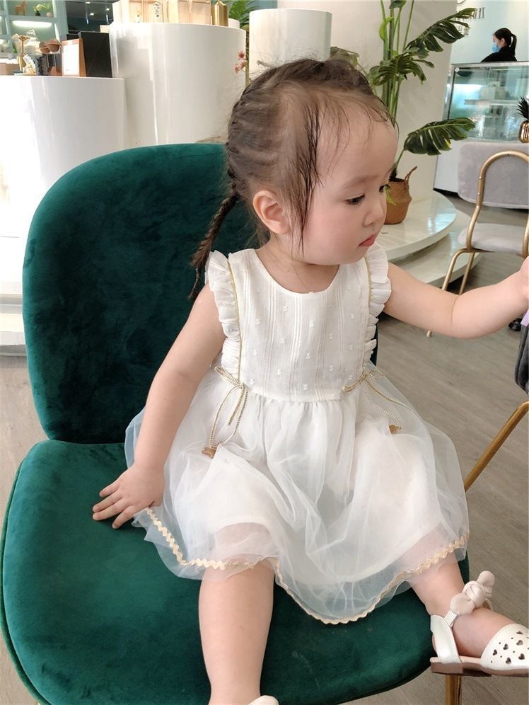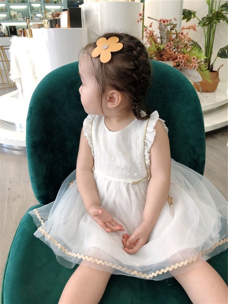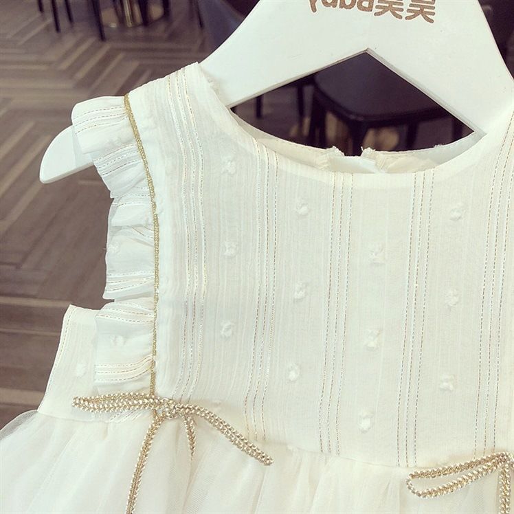 아기의 거즈 스커트 2023 여름 새로운 스타일 서양 스타일 여름 원피스 소녀의 푹신한 원사 메쉬 원사 공주 원피스