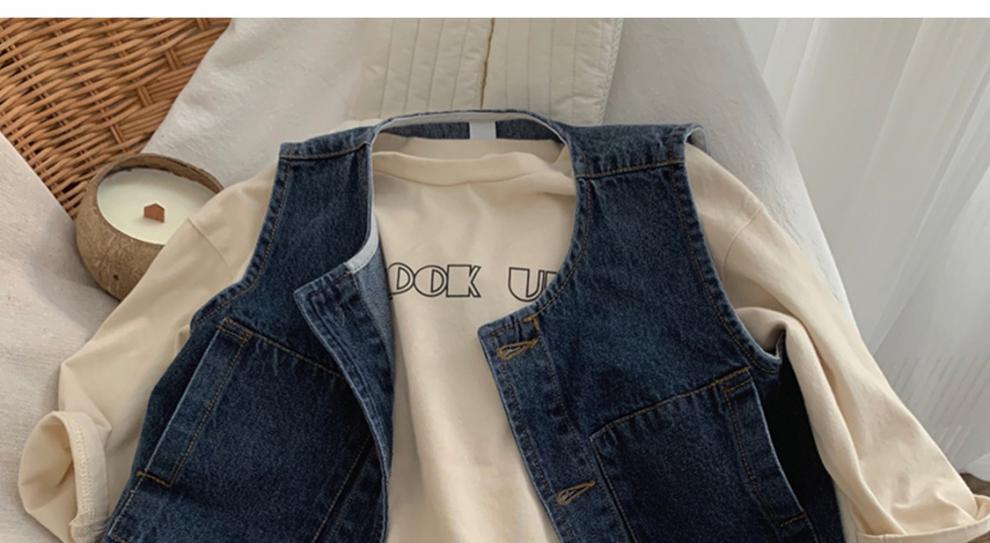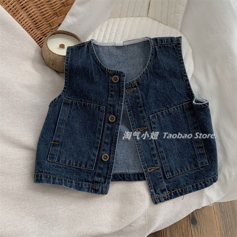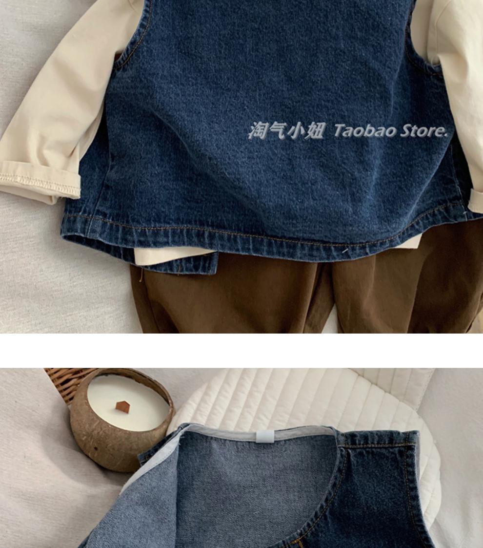 한국식 아동복 봄과 가을 새로운 소년과 소녀 아기 외국 스타일의 데님 조끼 어린이의 모든 매치 컬러 조끼 외부 착용 패션스토어 가기