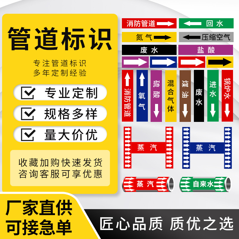 공장 재고 반사 필름 파이프 라벨 로고 스티커 텍스트 흐름 화살표 컬러 링 산업 화재 안전스토어 가기