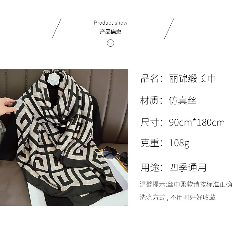 2023 새로운 여름 실크 스카프 여성용 리 브로케이드 새틴 인쇄 길어진 얇은 숄 외부 장식 스카프 비치 타올