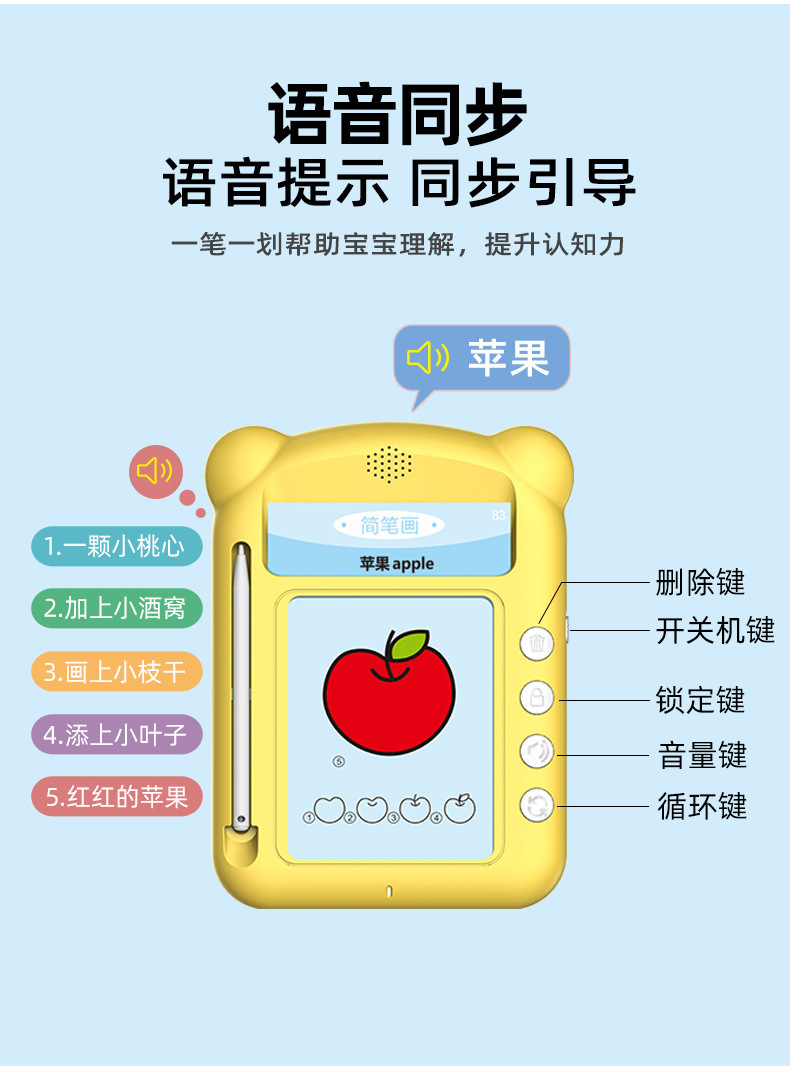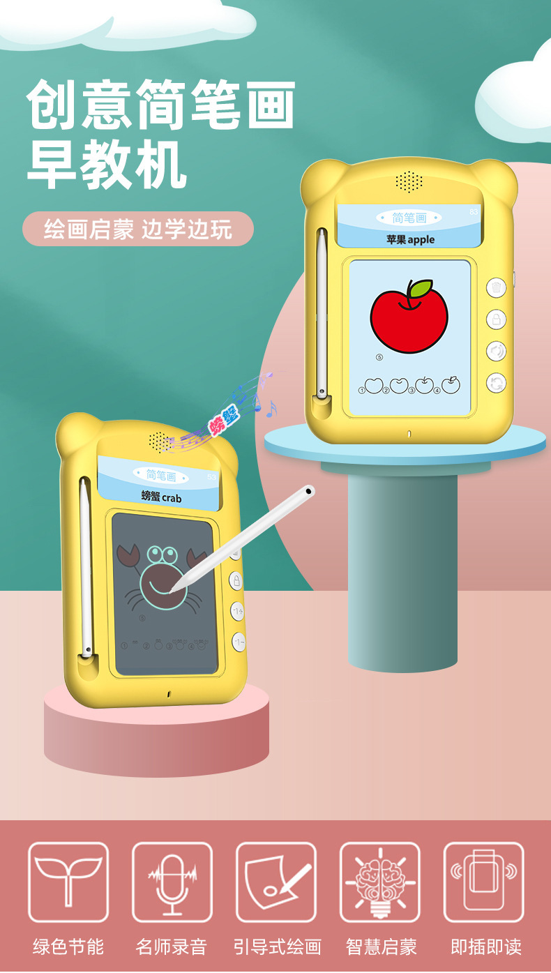 어린이 학습 조기 교육 LCD LCD 필기 보드 병음 교육 조기 교육 계몽주의 투명 카드 기계 교육 완구