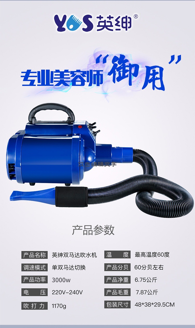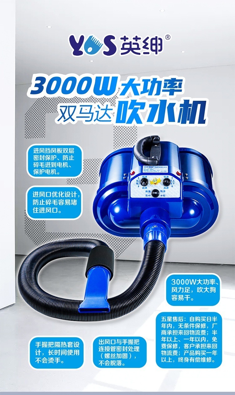 Yingshen Shuangmada 대형견용 애완 동물 블로우 머신 3400W 고출력 오존 살균 전기 가열 음소거 헤어 블로잉