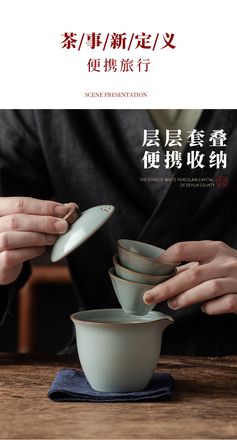 汝窑开片可养快客杯日式便携包户外旅行功夫茶具一壶三杯陶瓷汝瓷