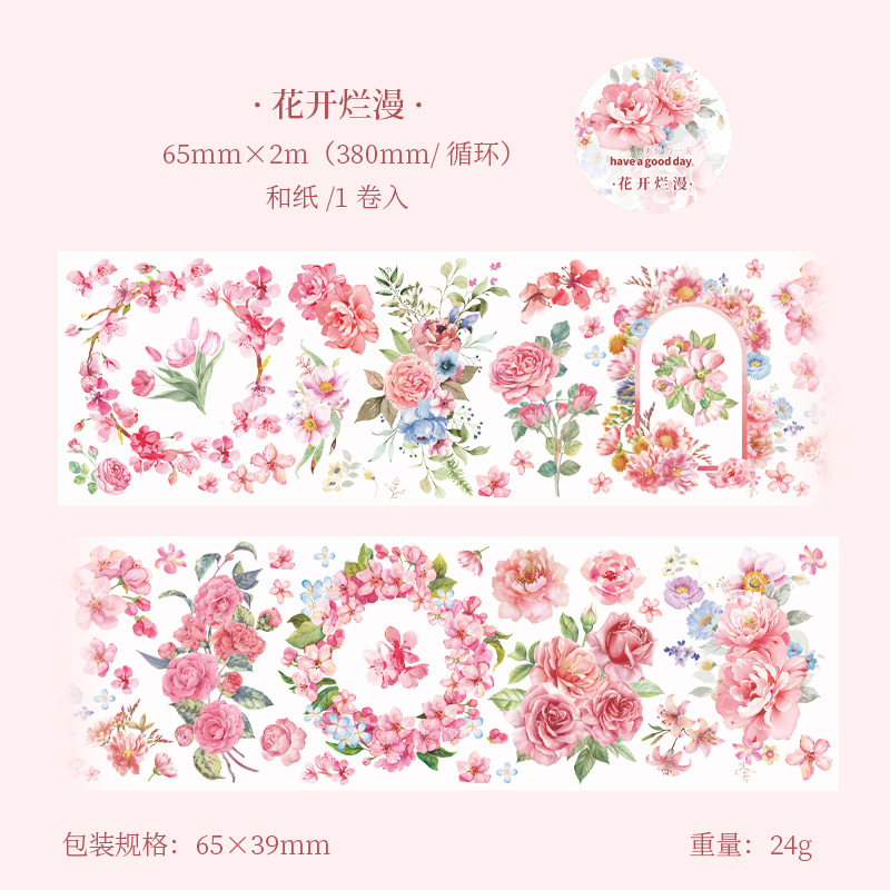 아름다운 봄 전체 정원 시리즈 특수 오일 테이프 DIY 신선한 꽃 손 계정 장식 조경 재료 사이클 페이스트스토어 가기