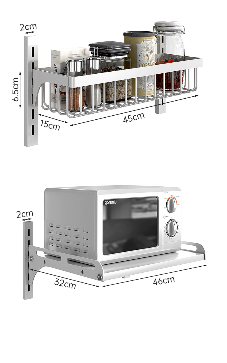 조미료 보관용 철제 수납 선반, 무타공 오븐 선반, 후크, 전자레인지 선반, 벽걸이형 캐비닛