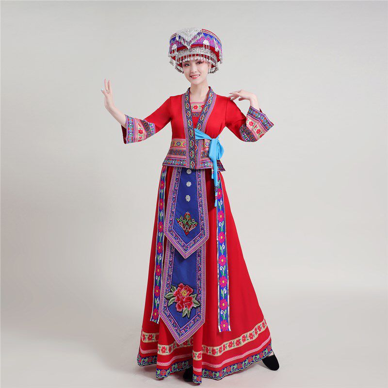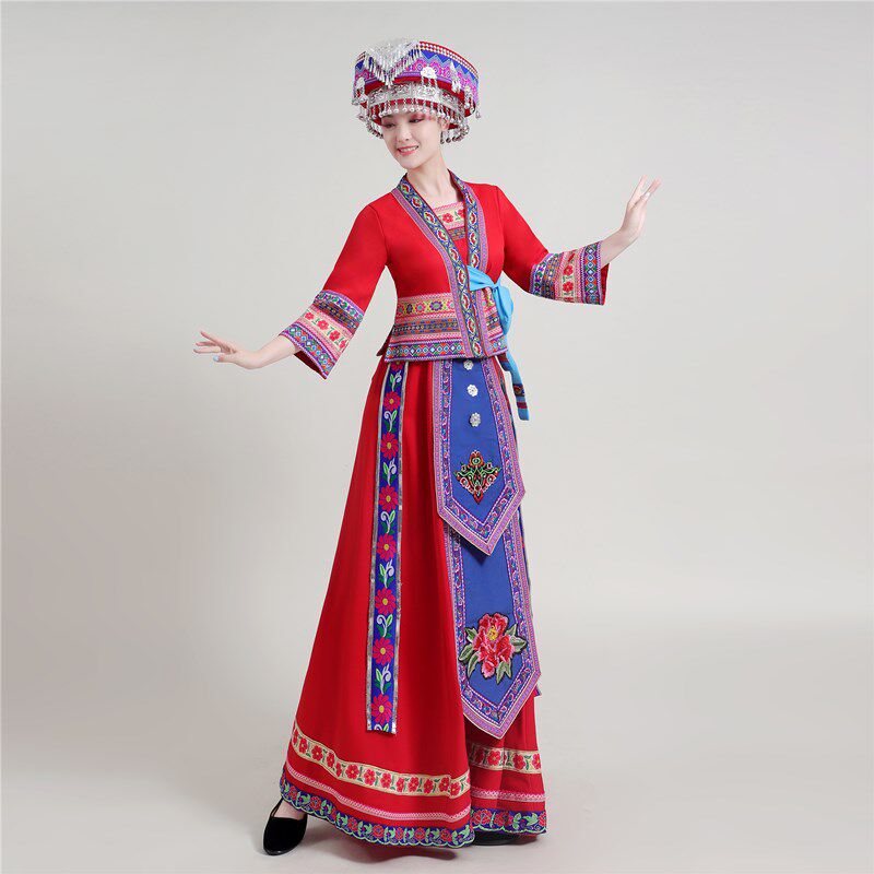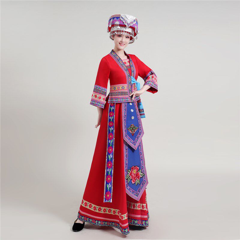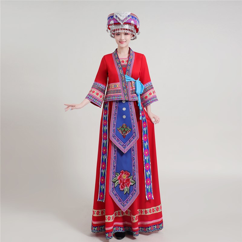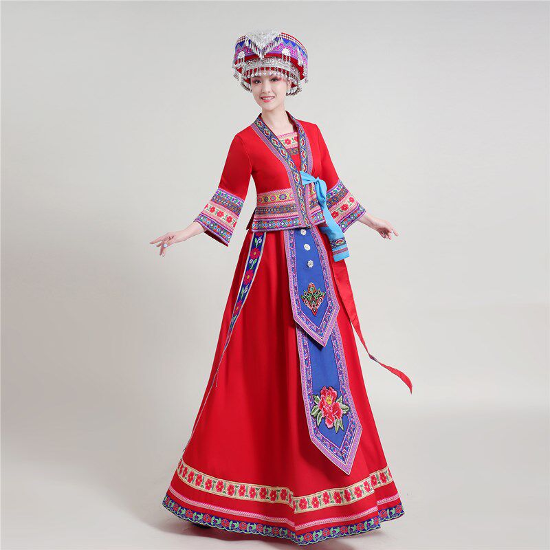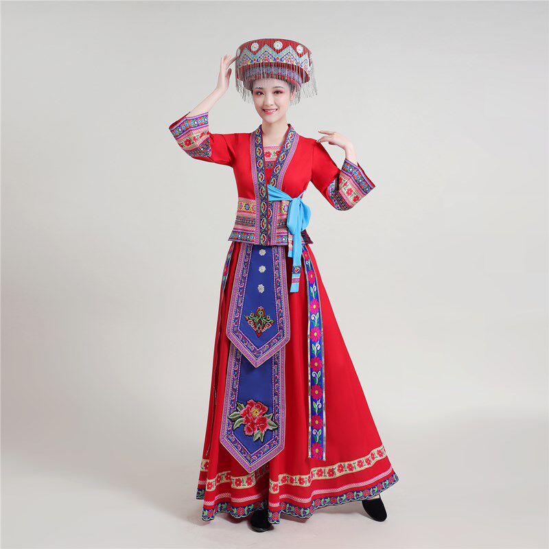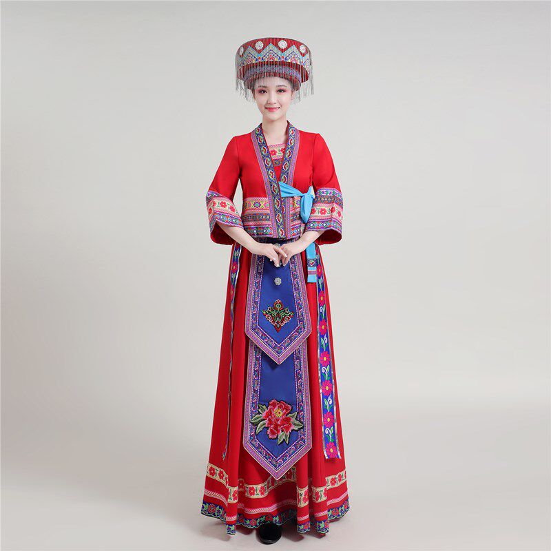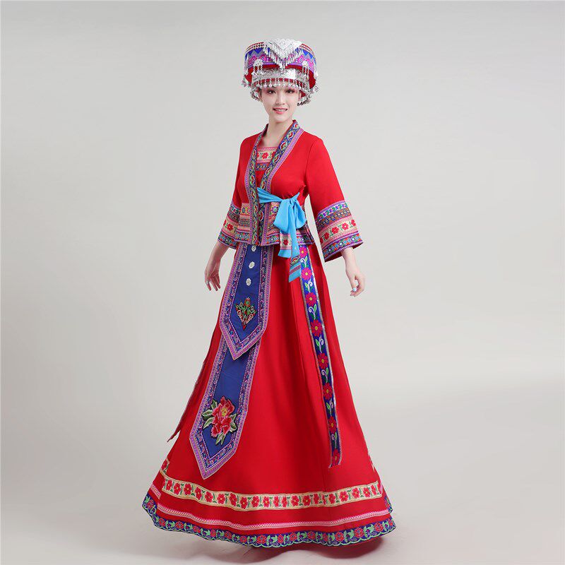새로운 Miao 국적 원피스 성인 소녀 세트 Guizhou Miao 가족 원피스 무대 성능 원피스 여행 사진스토어 가기