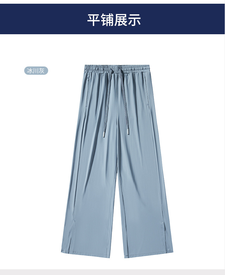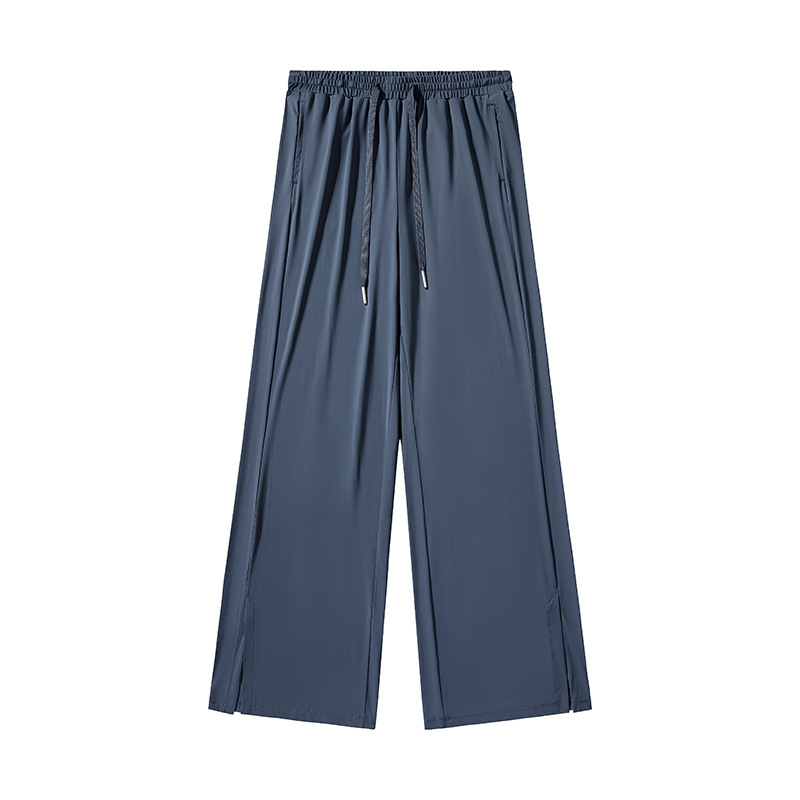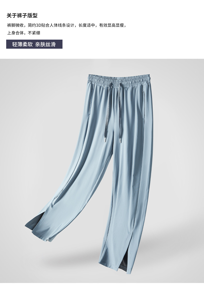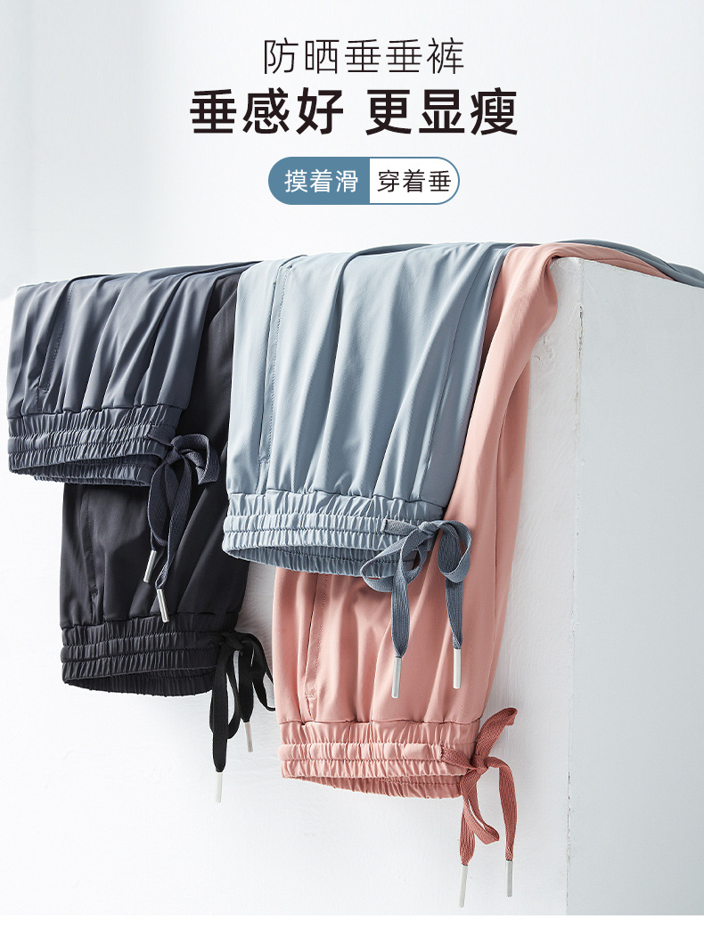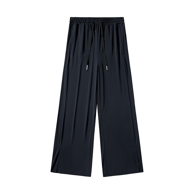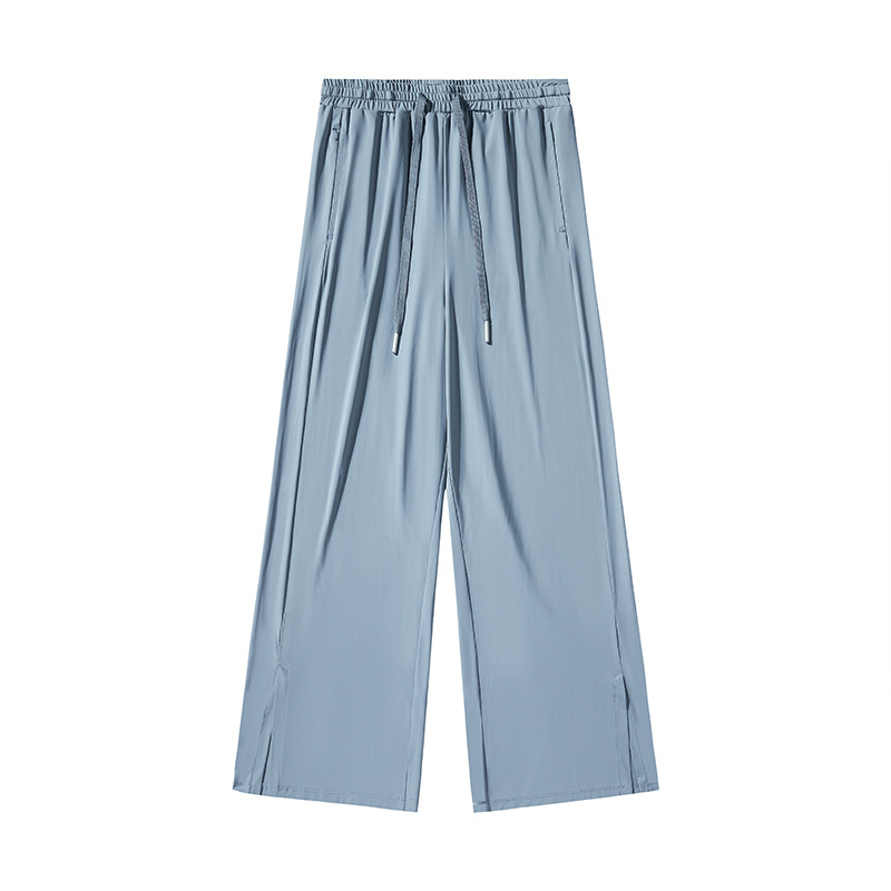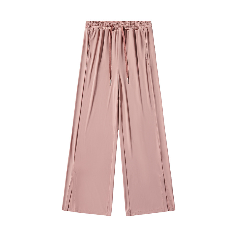 Jiao Xia 같은 스타일 태양 보호 바지 여성의 느슨한 스트레이트 슬리밍 달리기 피트니스 얇은 하이 웨이스트 바지 분할 드레이프 아이스 실크 바지스토어 가기