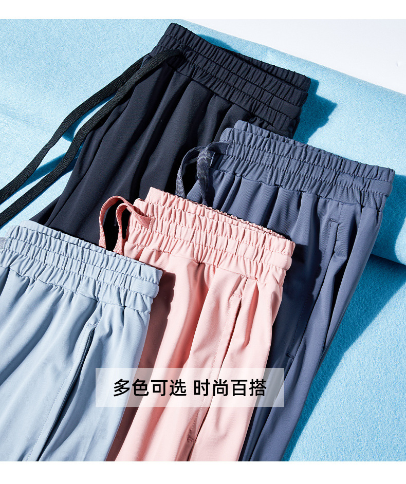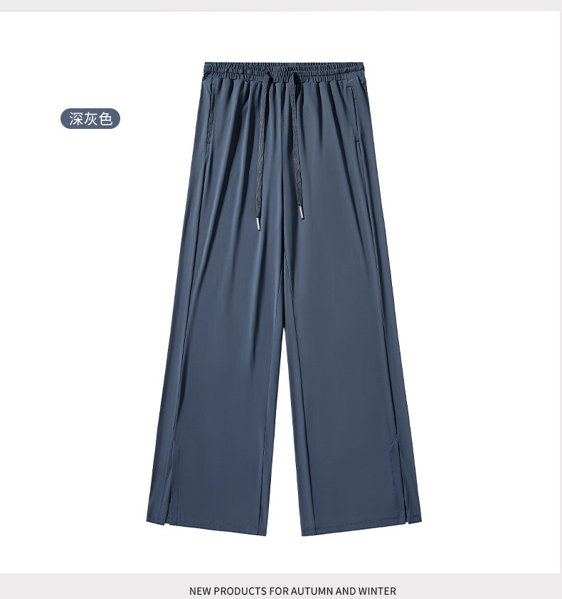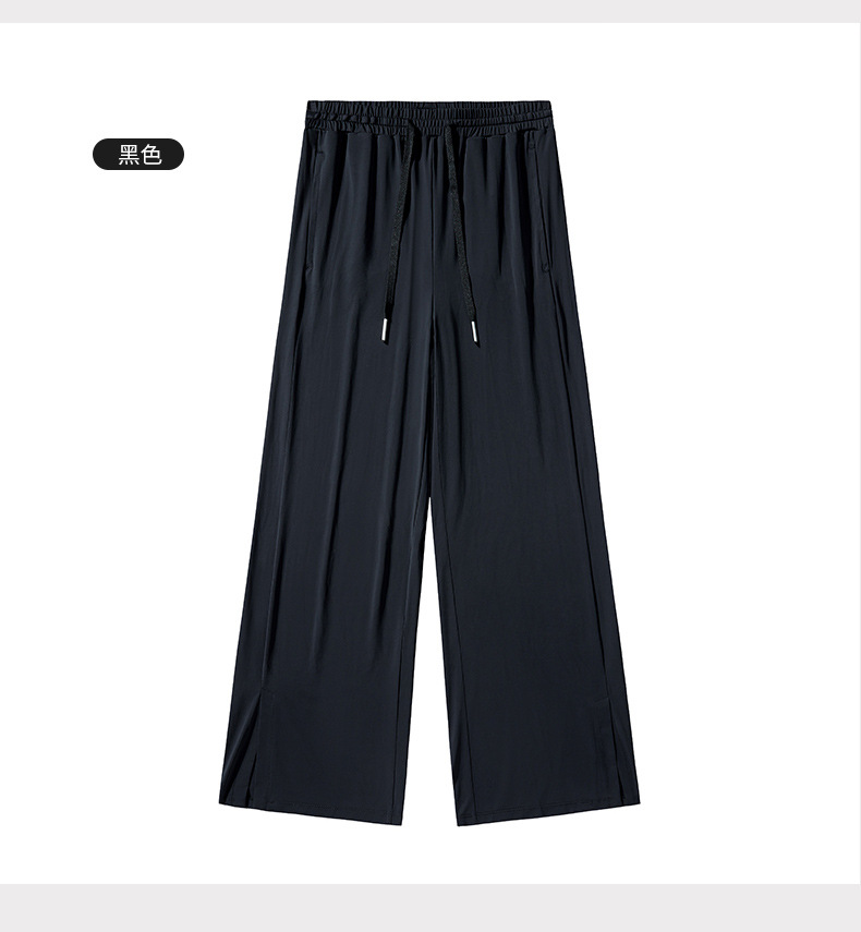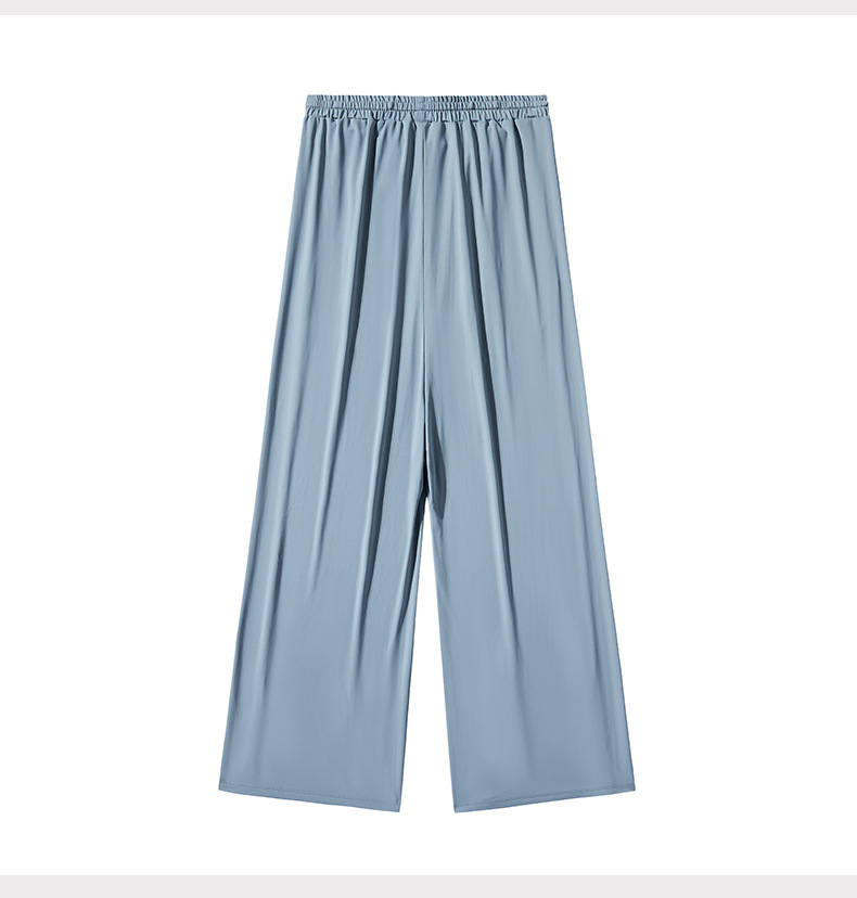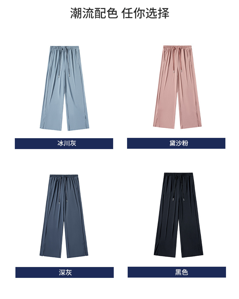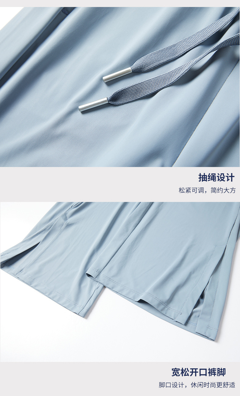 Jiao Xia 같은 스타일 태양 보호 바지 여성의 느슨한 스트레이트 슬리밍 달리기 피트니스 얇은 하이 웨이스트 바지 분할 드레이프 아이스 실크 바지스토어 가기