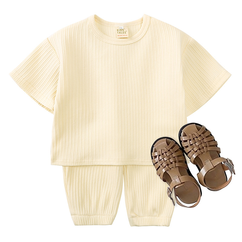 【产品名称】童装批发2024夏季新款韩版宝宝套装儿童休闲短袖上衣裤子两件套