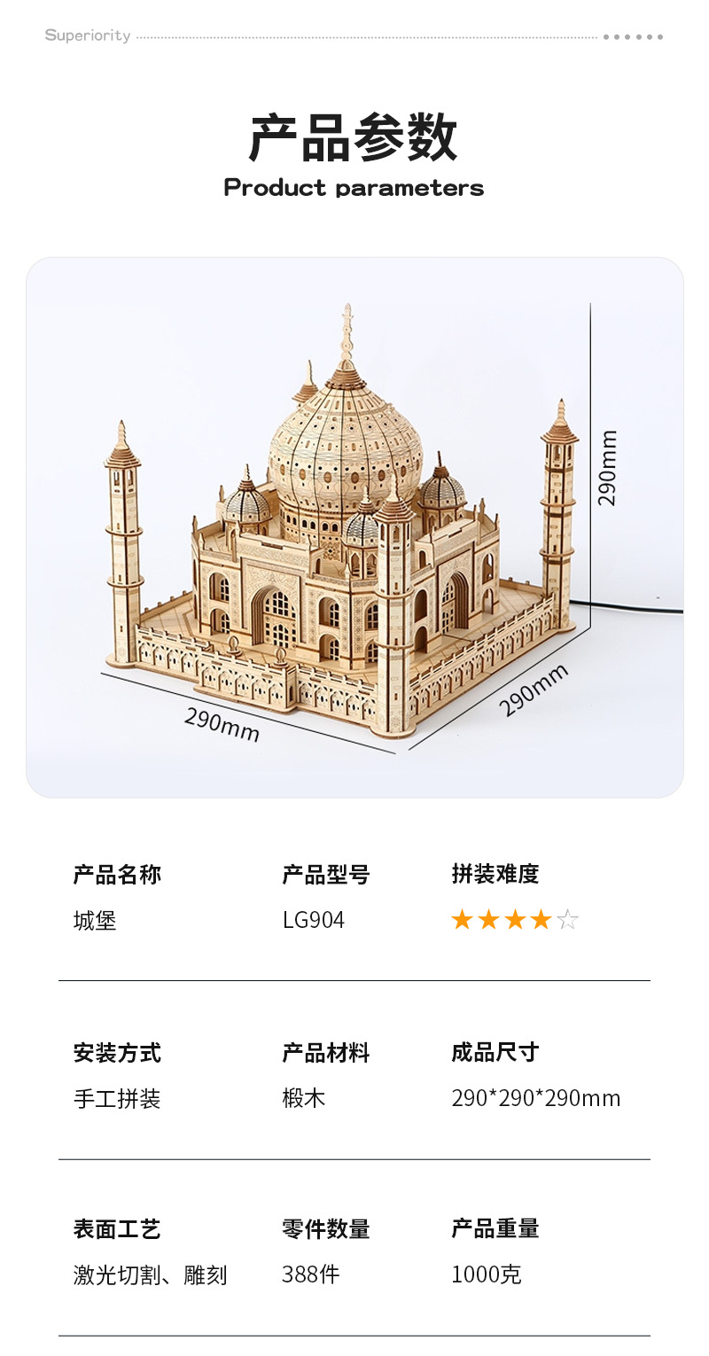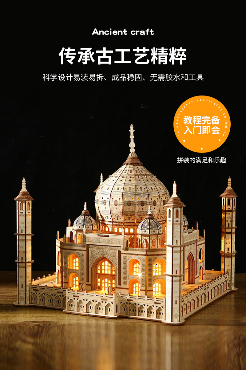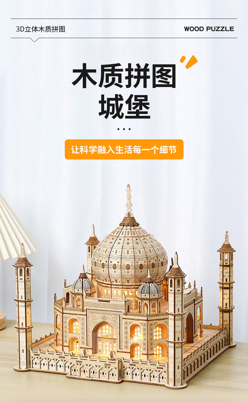 3D 입체 퍼즐 성 시뮬레이션 입체 모델 장식품 교육 나무 퍼즐 어린이 조기 교육 장난감 도매