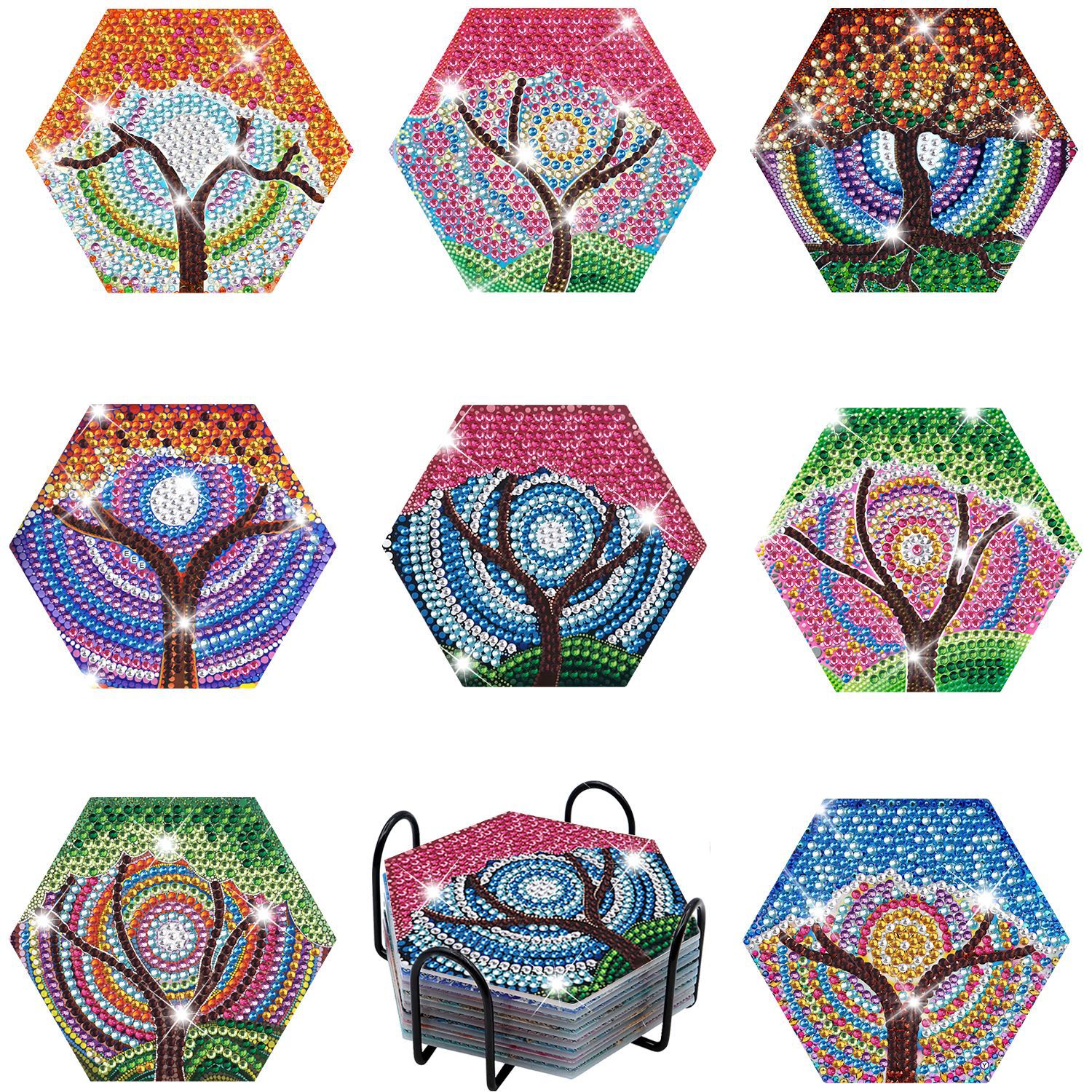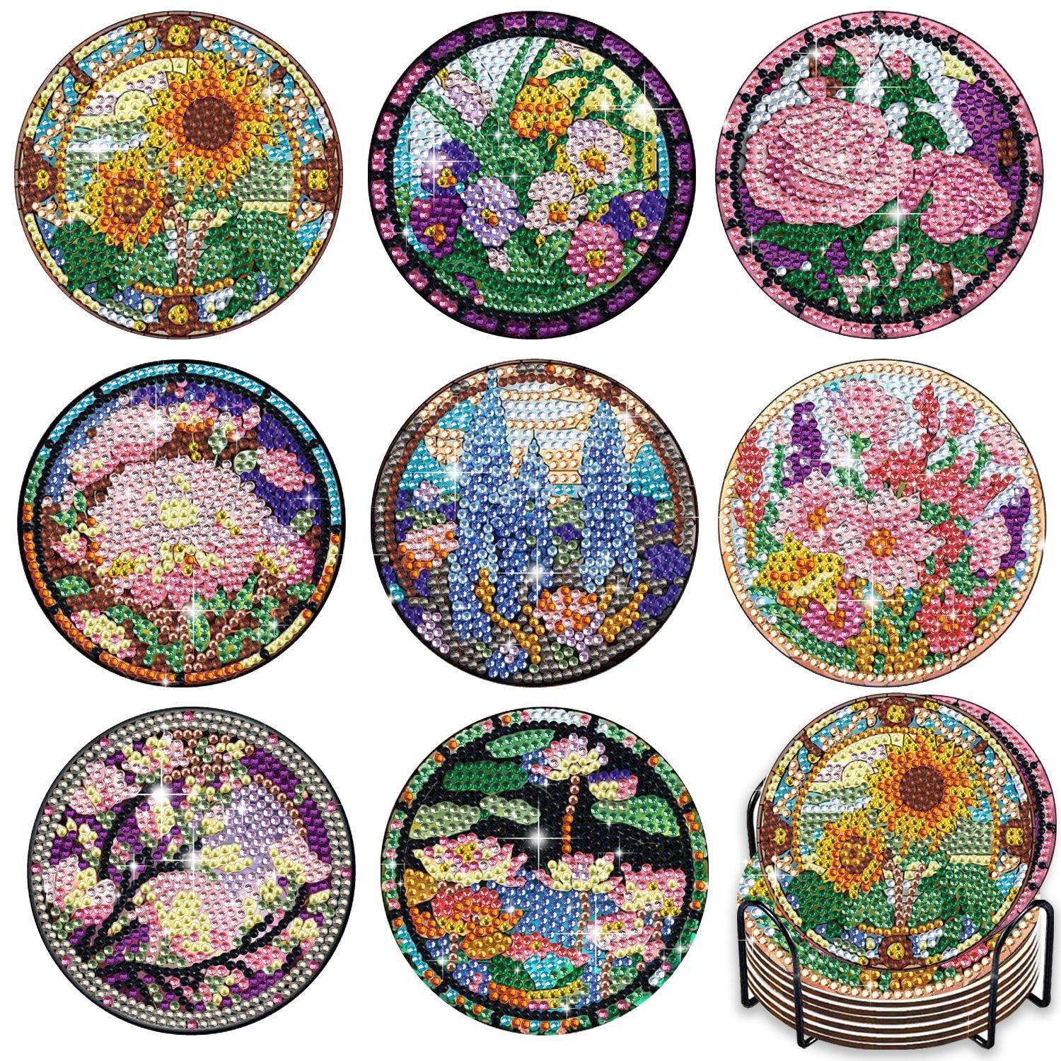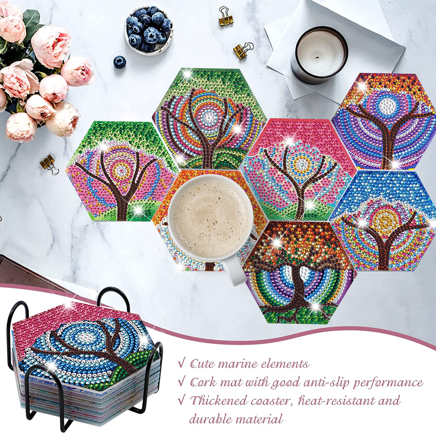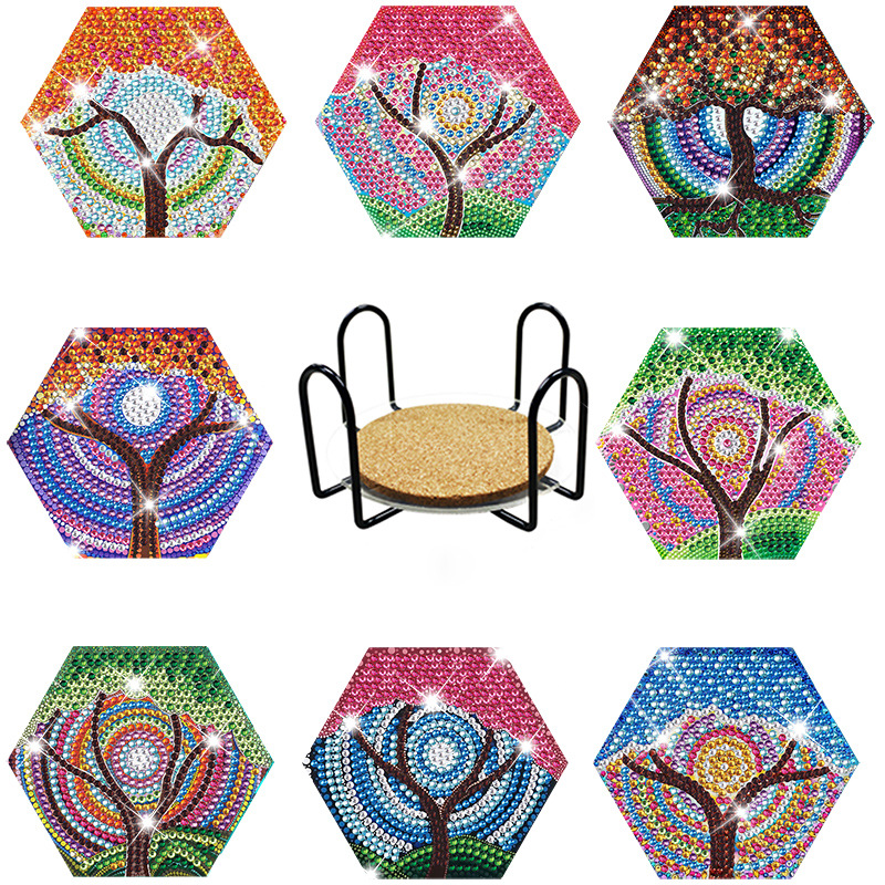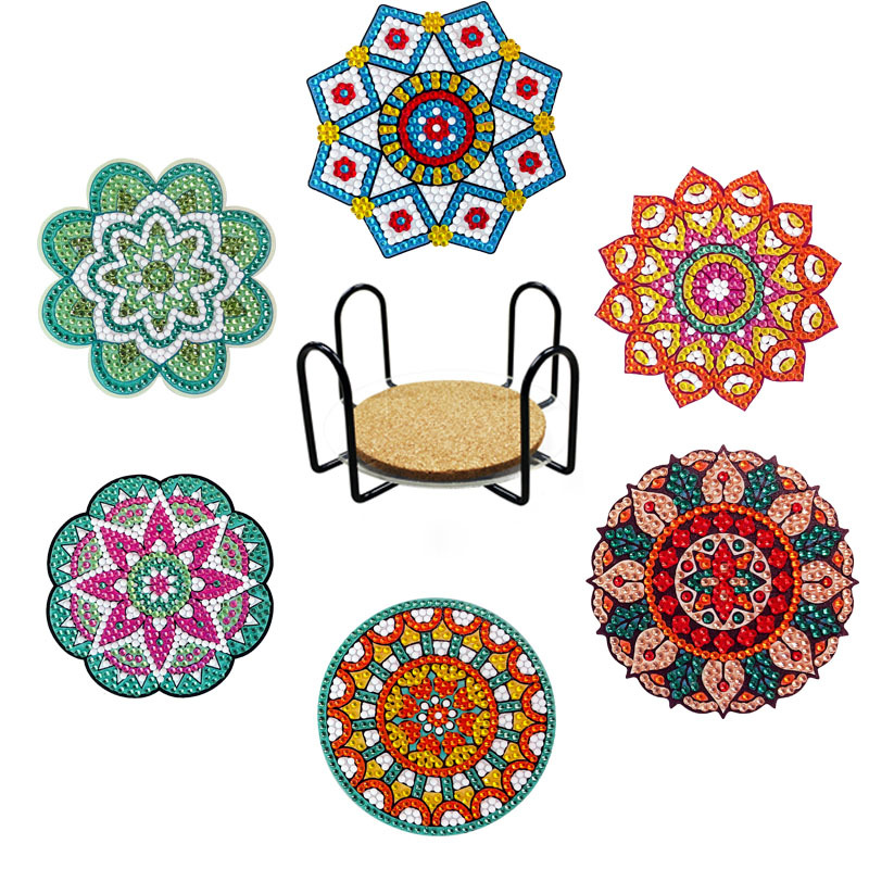새로운 창조적 인 다이아몬드 페인팅 코스터 국경 공예 DIY 수제 다이아몬드 코르크 매트 홈 컬러 박스 플레이스