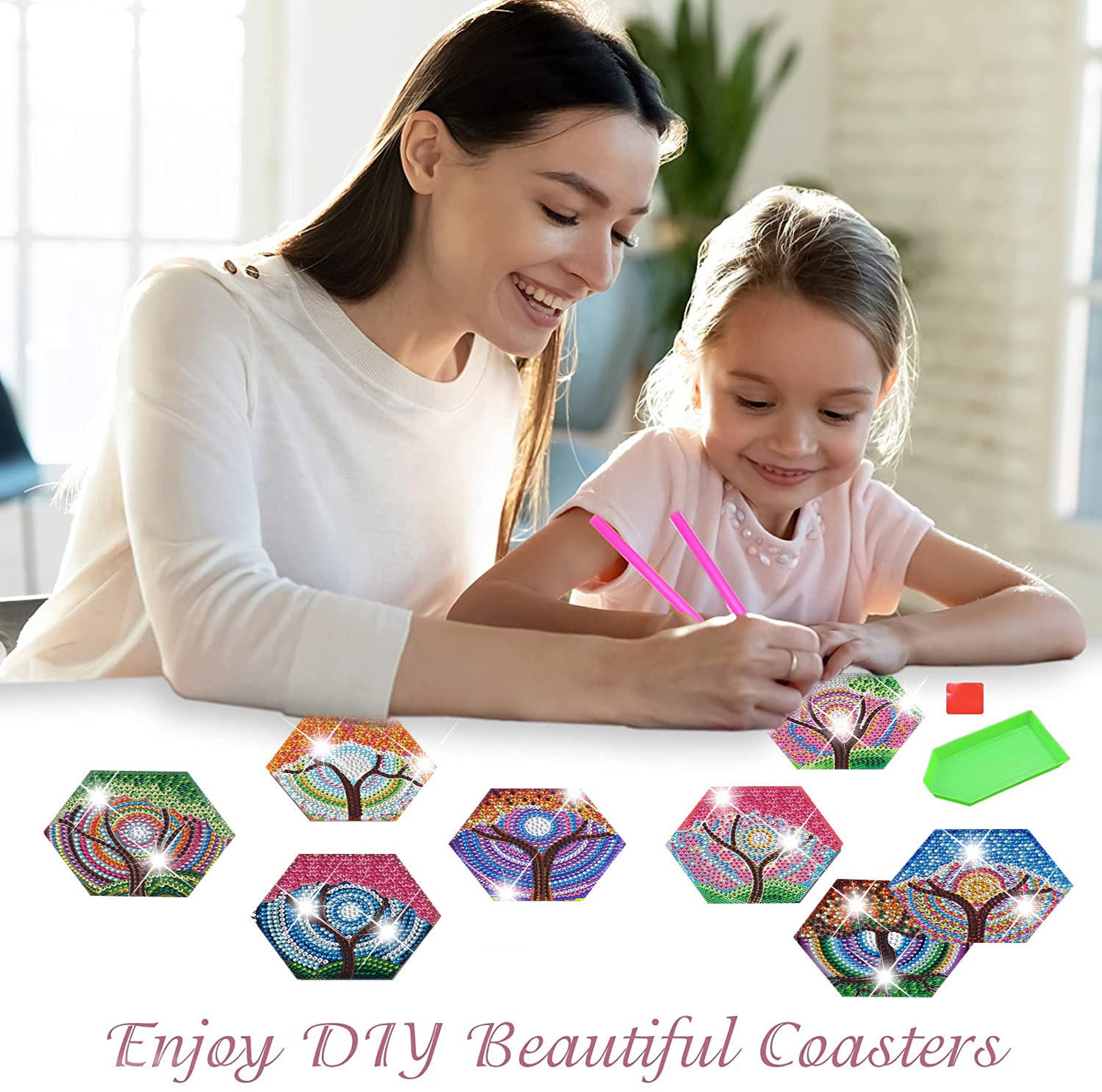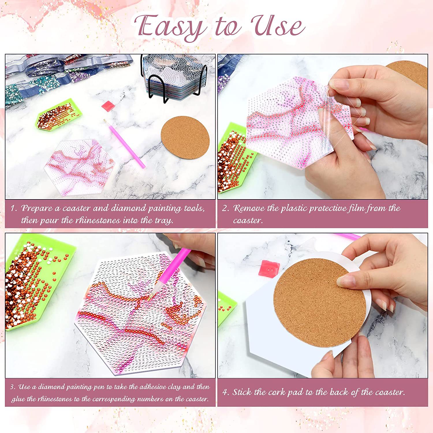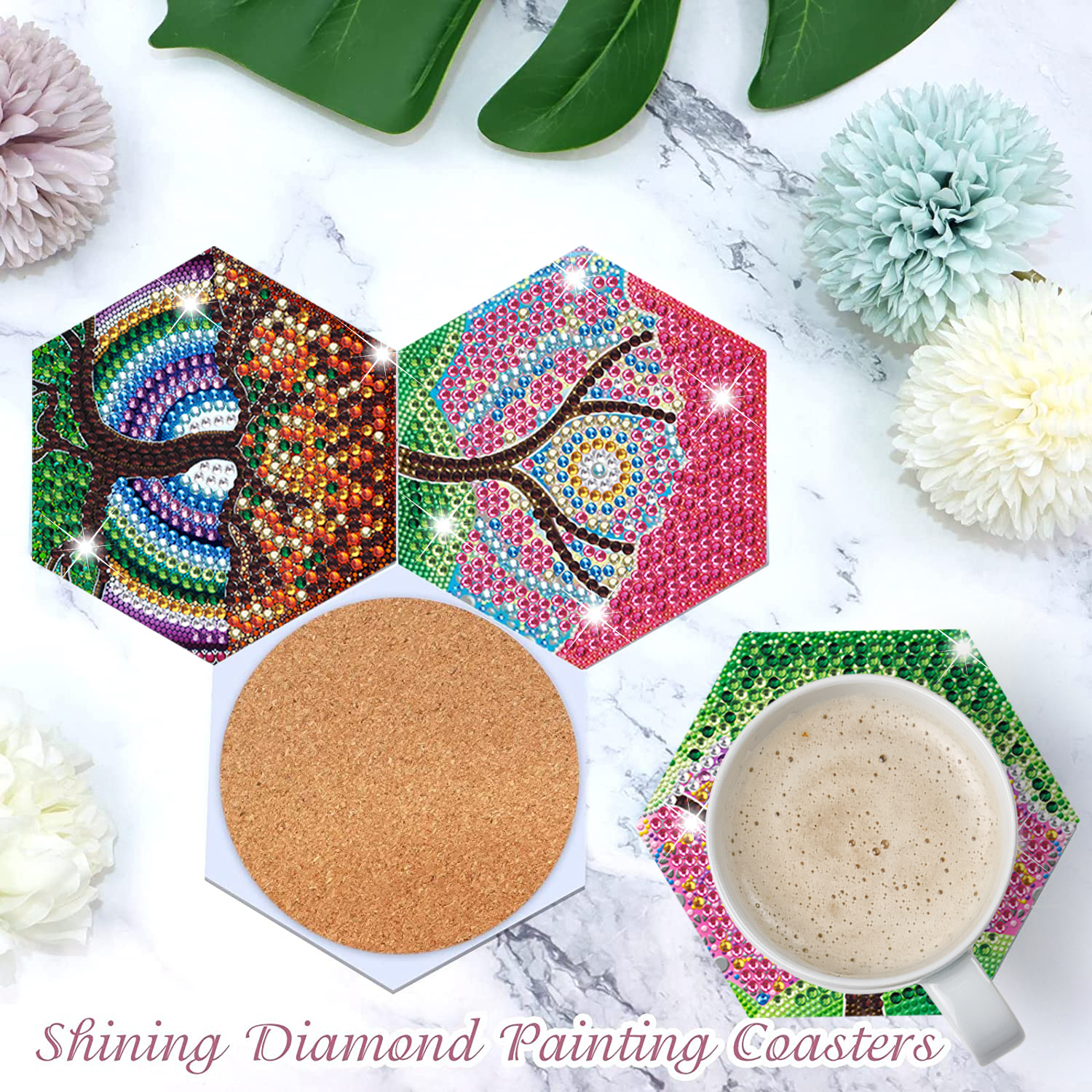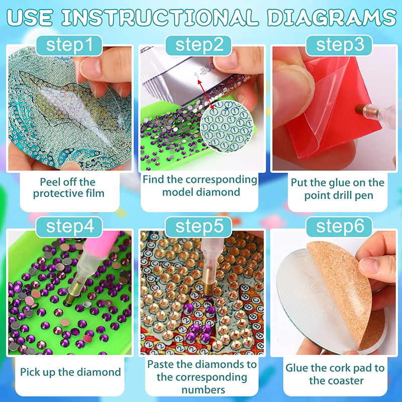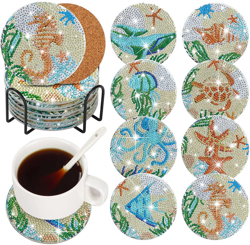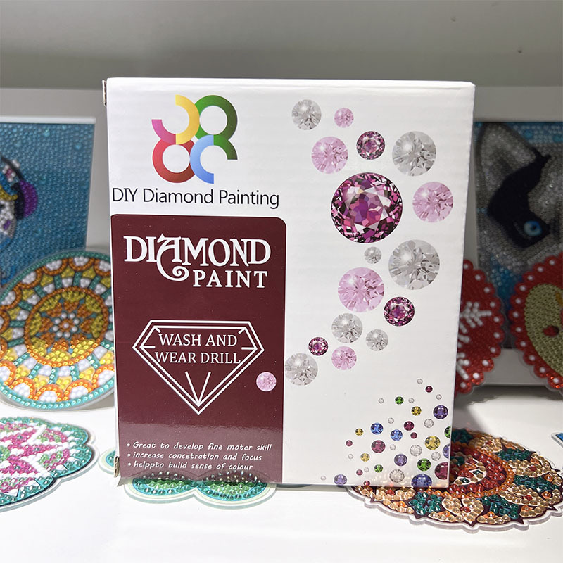 새로운 창조적 인 다이아몬드 페인팅 코스터 국경 공예 DIY 수제 다이아몬드 코르크 매트 홈 컬러 박스 플레이스스토어 가기