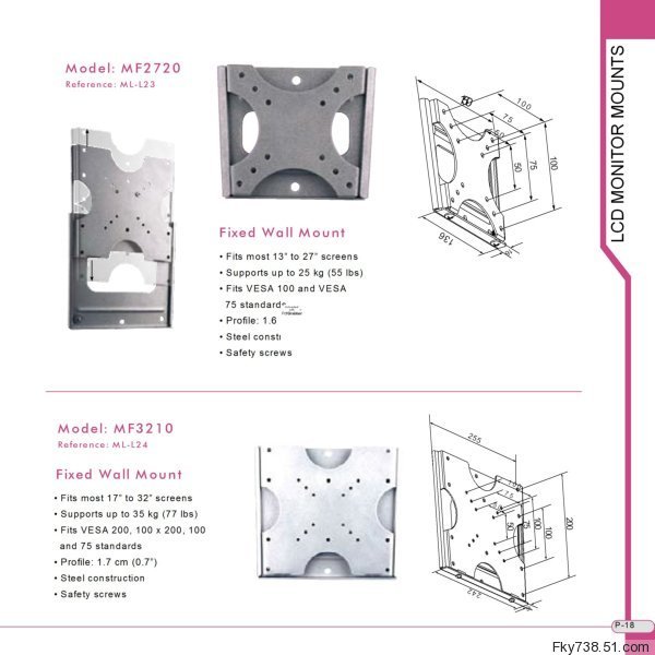 ![]() ![]() ![]() ![]() ![]() ![]() 此款适合小型支架,可以承载25KG ,对于小型支架来说是绝对牢固 孔距能够适应100*100MM 75*75MM 基本适应27寸以内的电视 表面光亮处理,离墙壁2.5CM 简单牢固型支架