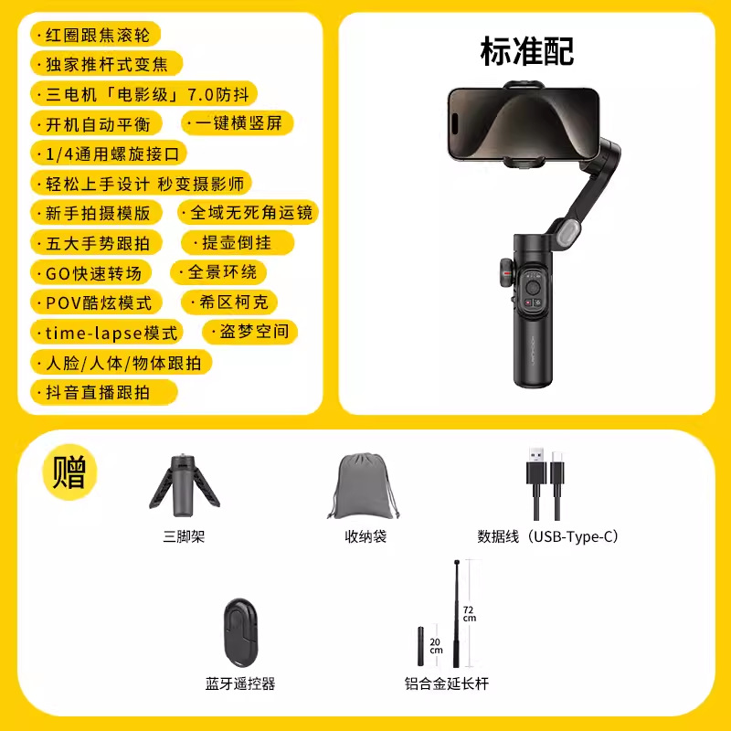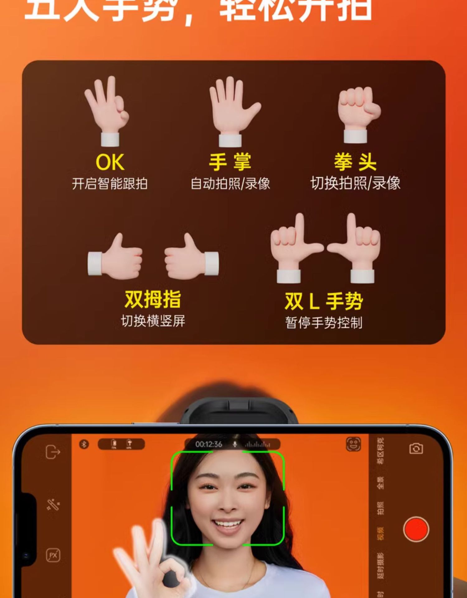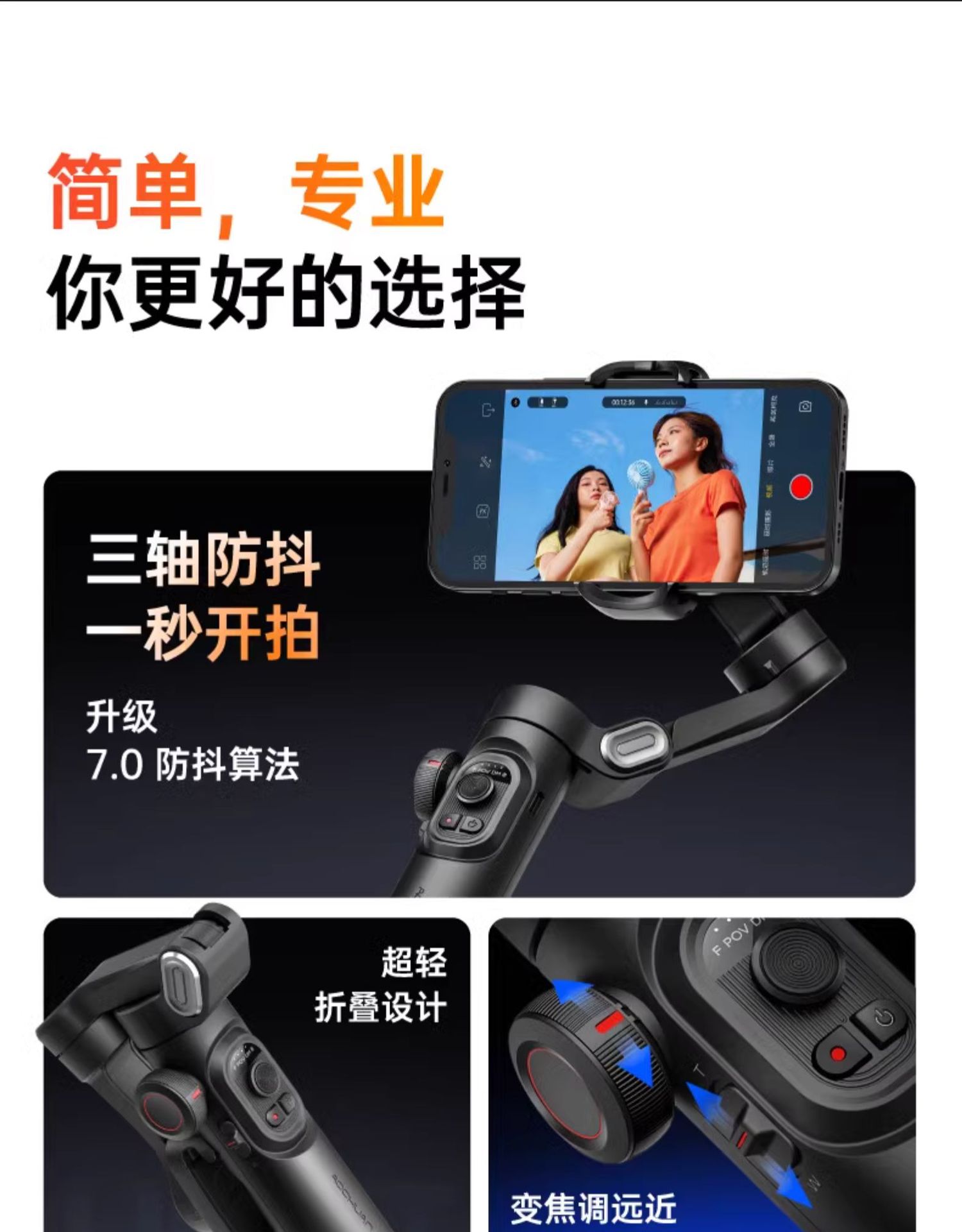 오카와 스마트 XE 휴대 전화 PTZ 안정기 3 축 핸드 헬드 안티 쉐이크 밸런스 촬영 TikTok 라이브 셀카 스틱